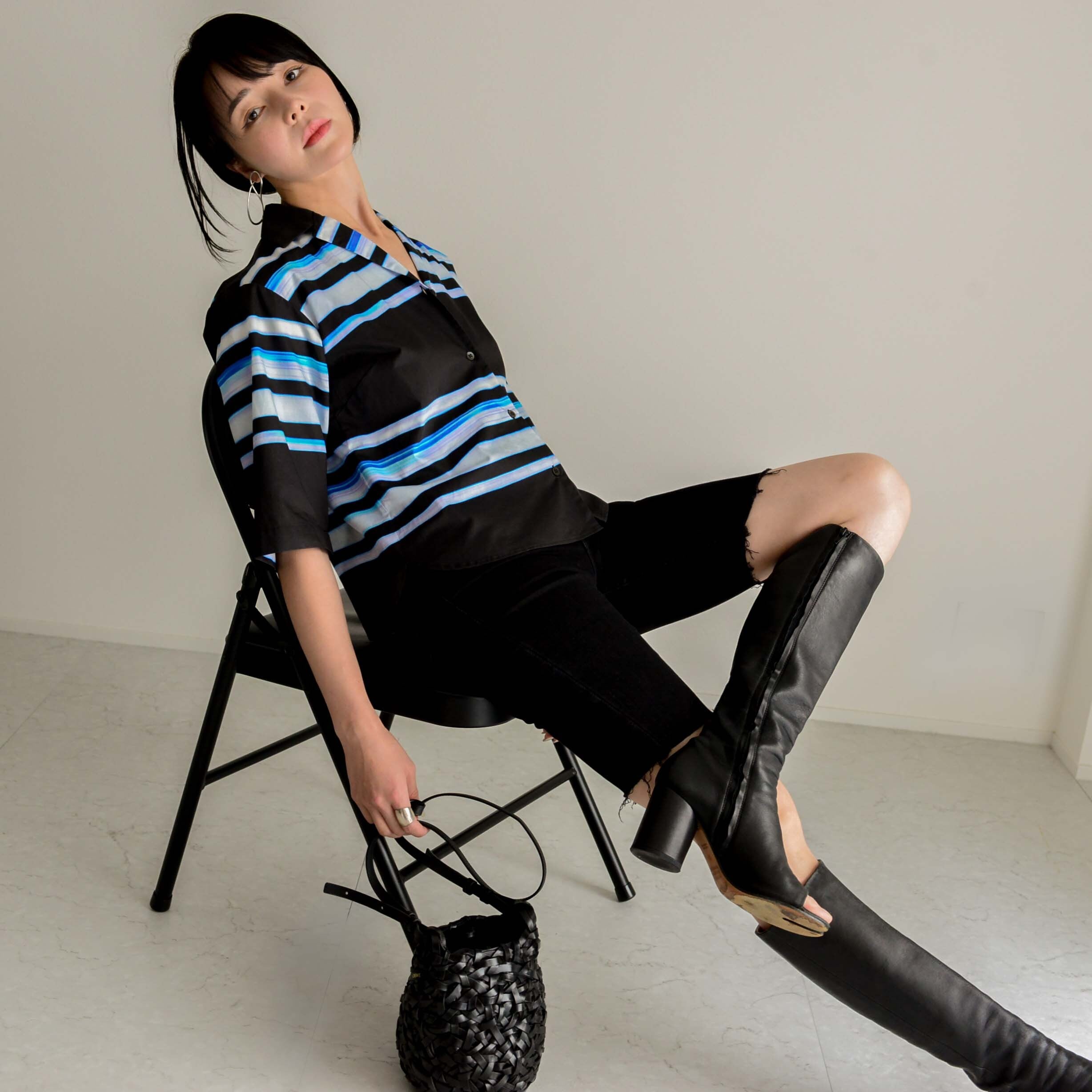 デニムなどカジュアルな素材のボトムでこなれたスタイルにも、キレイめ素材のスラックスやスカートでモードなイメージにも。