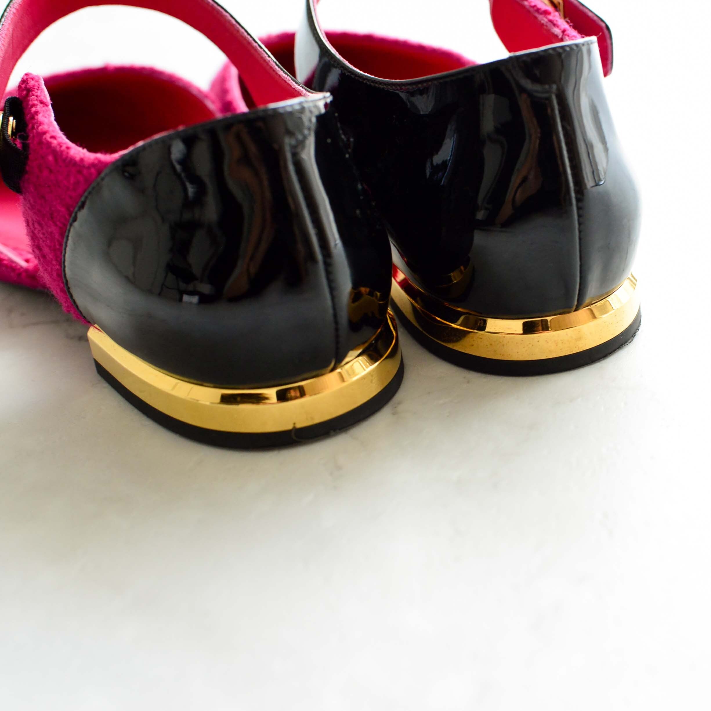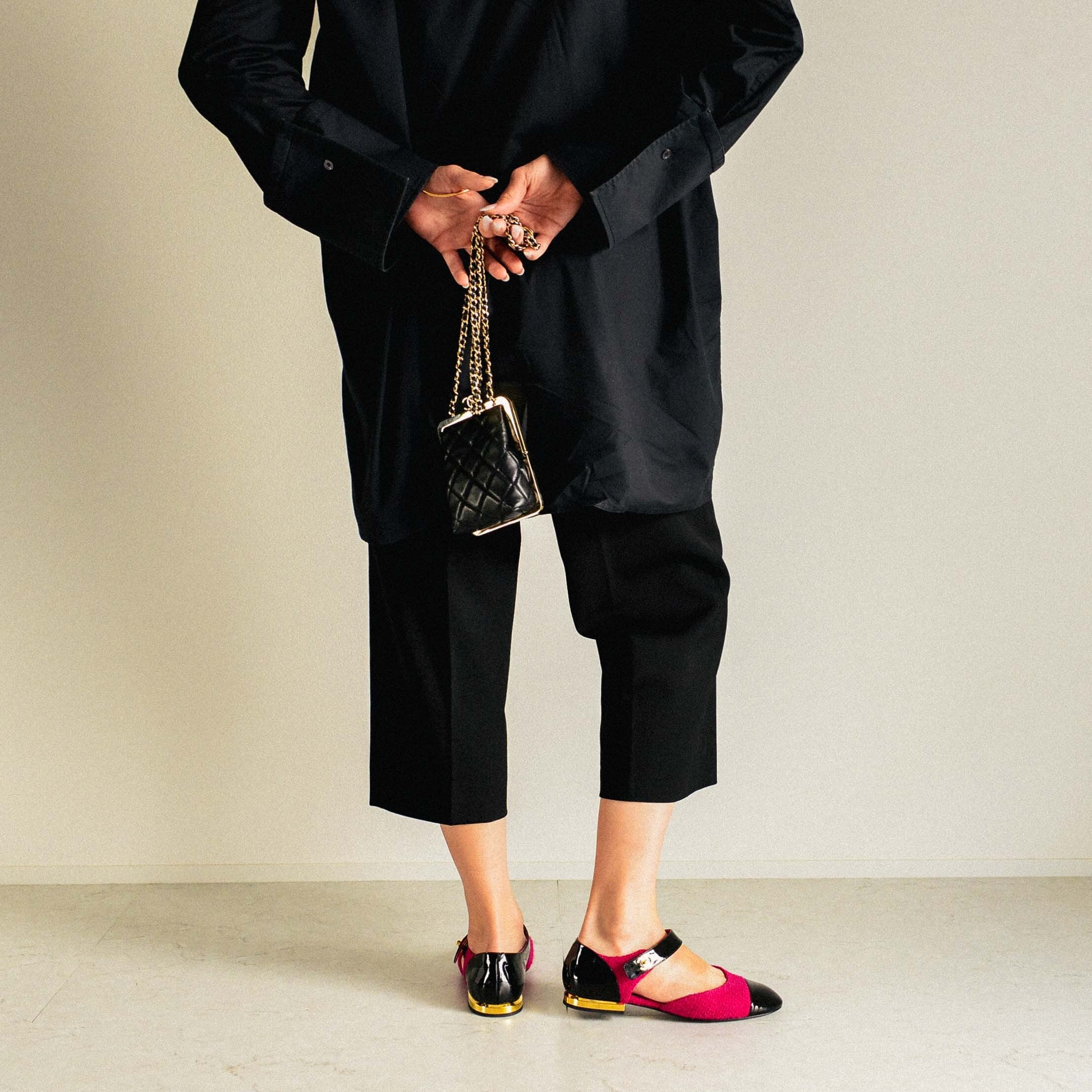 ゴールドのヒールとCHANELマークがクラシカルなアクセントに。