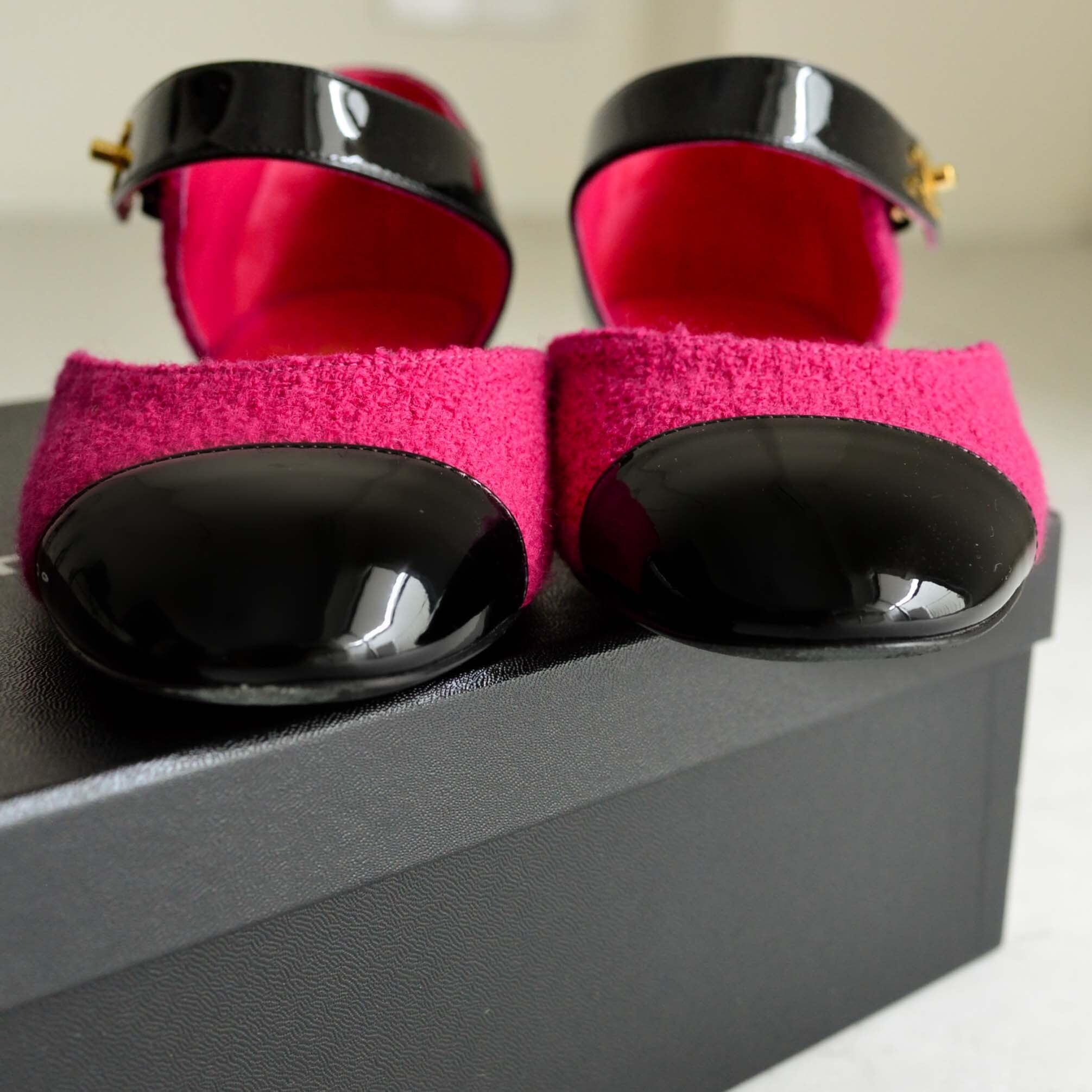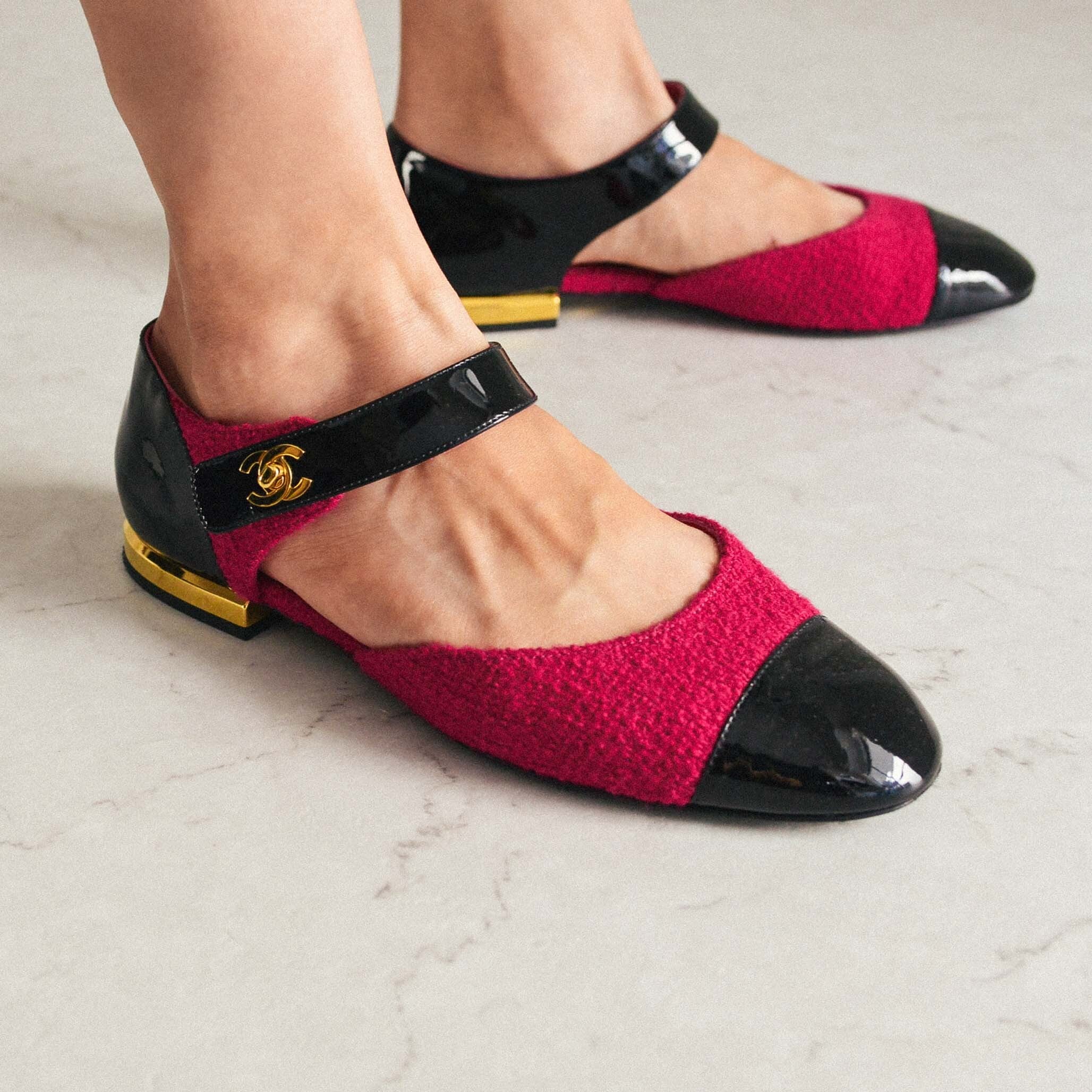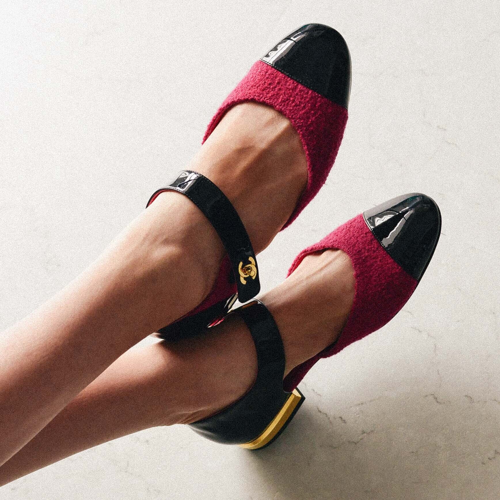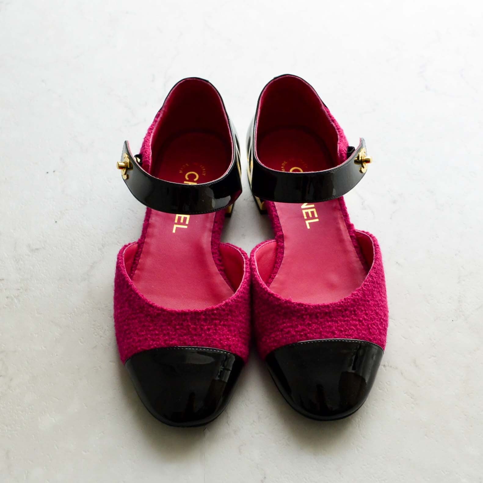 CHANELのアイコンとも呼べるキーワードが満載の美しいシューズ。