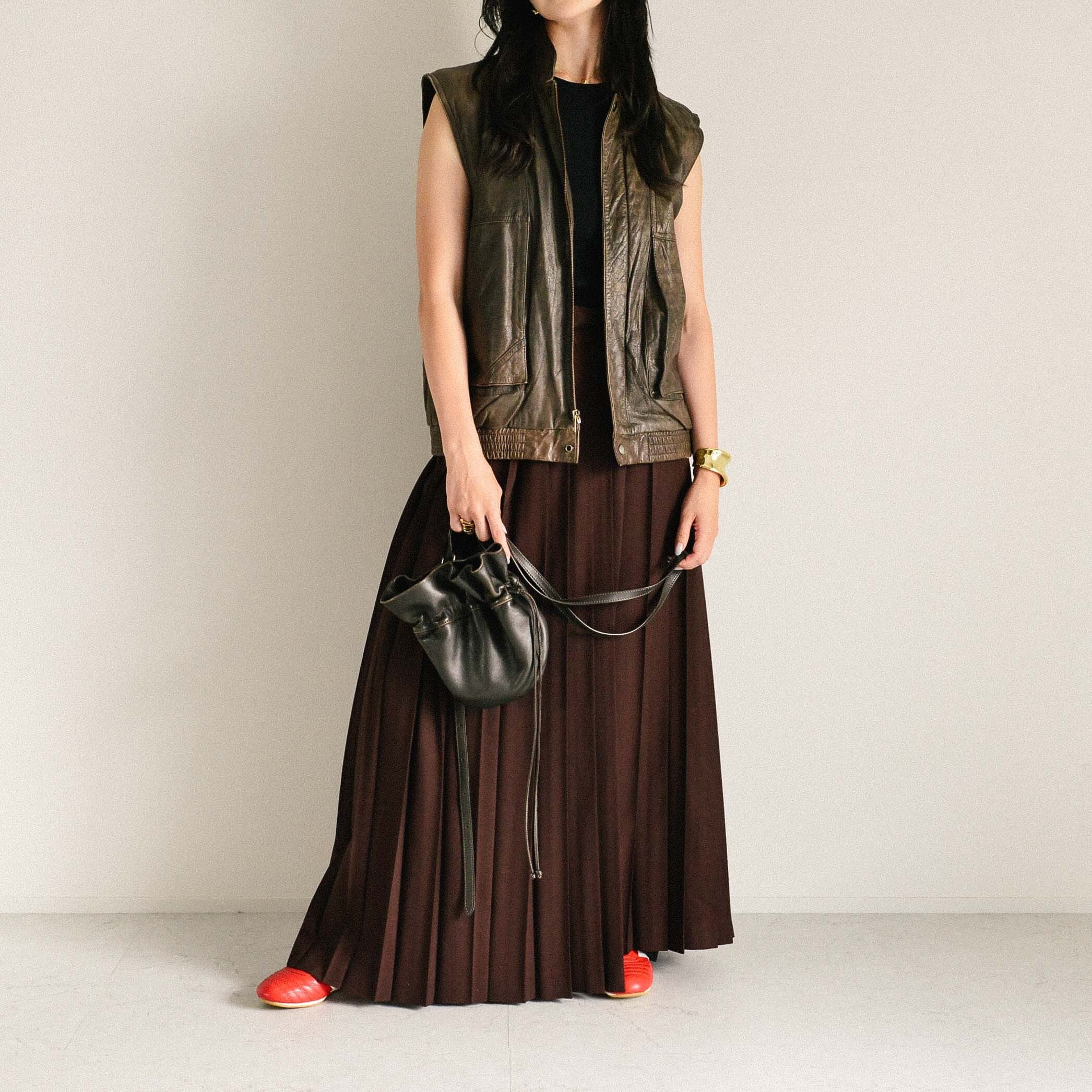 スーツ地やサテン、シアー素材、モヘアなどのニット、、様々なテクスチャーと相性が良く、ぴりりとスタイリングを引き締めてくれるアイテム。