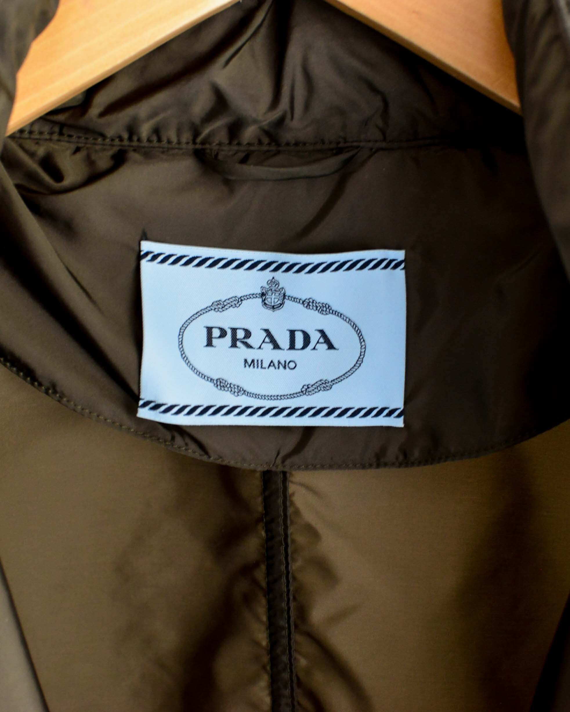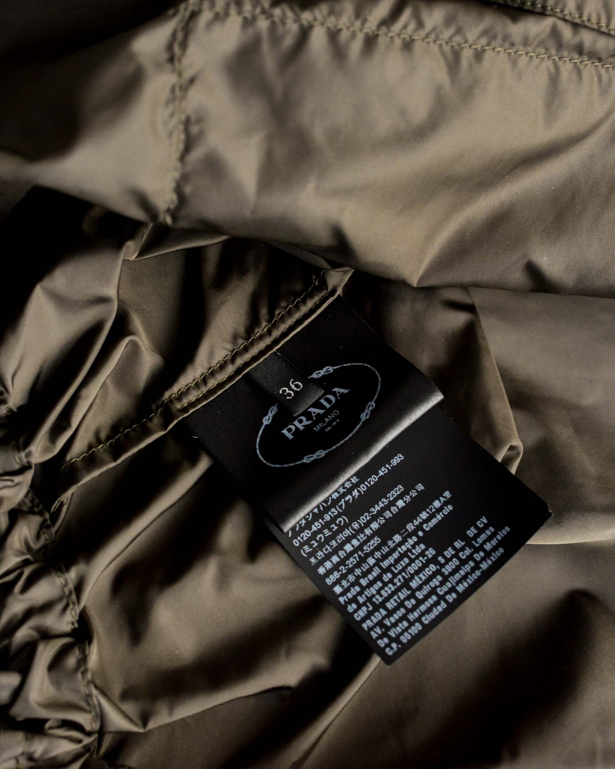 落ち着いたカーキ色はPRADAらしい色あい。
