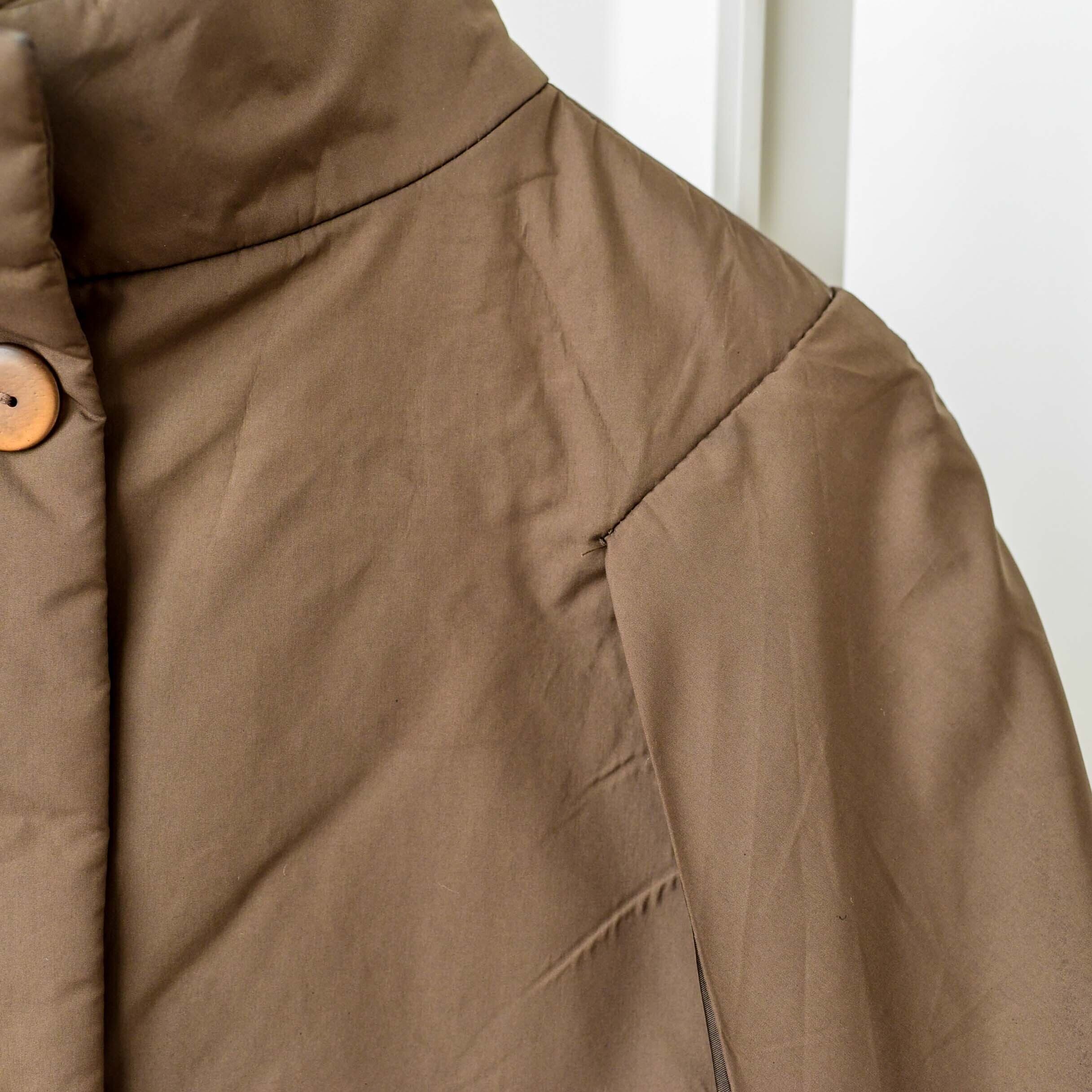 シャカシャカとスポーティで軽やかな素材感。落ち着いたブラウンが上品です。