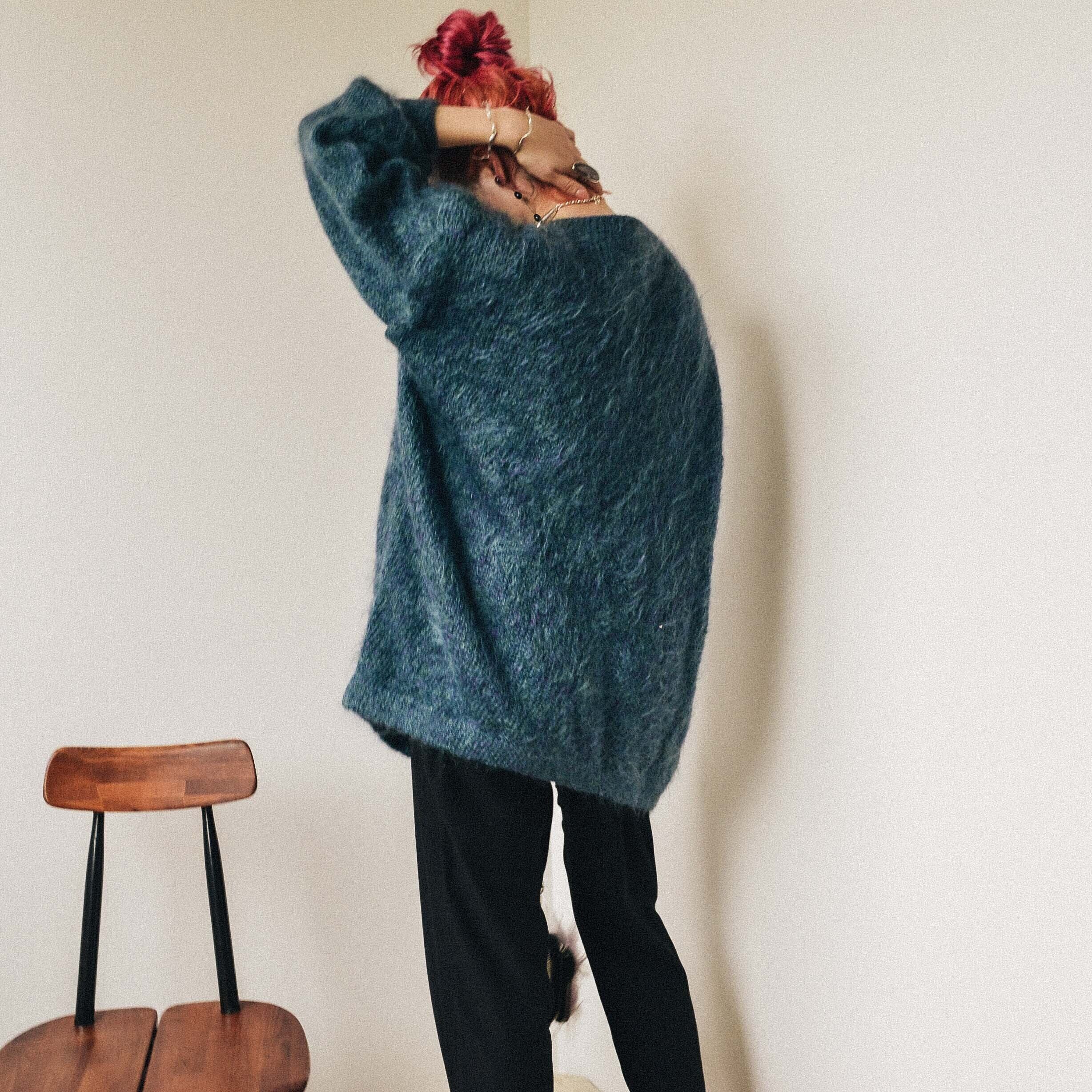 ふわふわと毛足が長いとても美しい糸で、青と碧が混ざった深く幻想的ですらある素晴らしい色合いです。