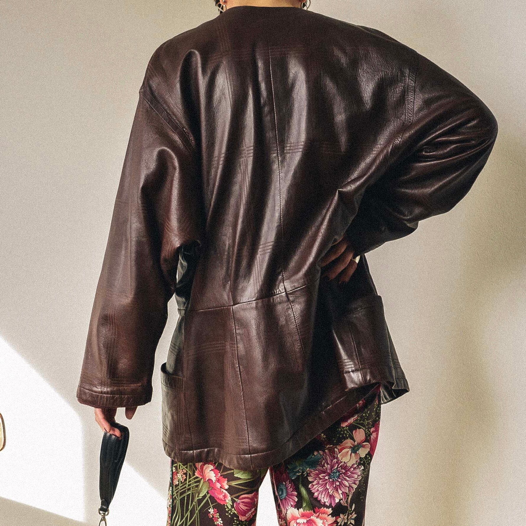 イタリアらしい大人の色香があります。実用的に着れる、けれど個性あるレザーの羽織りを探していた方に。