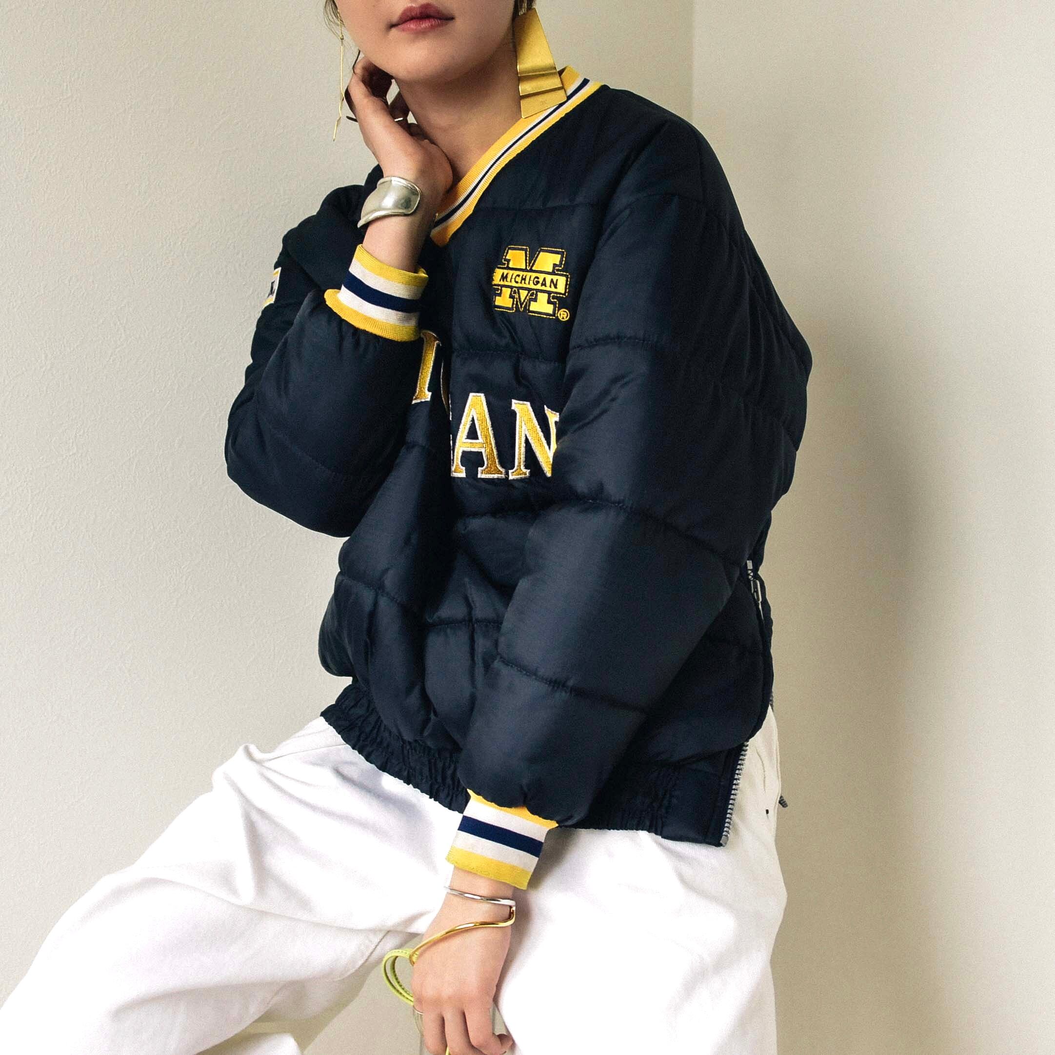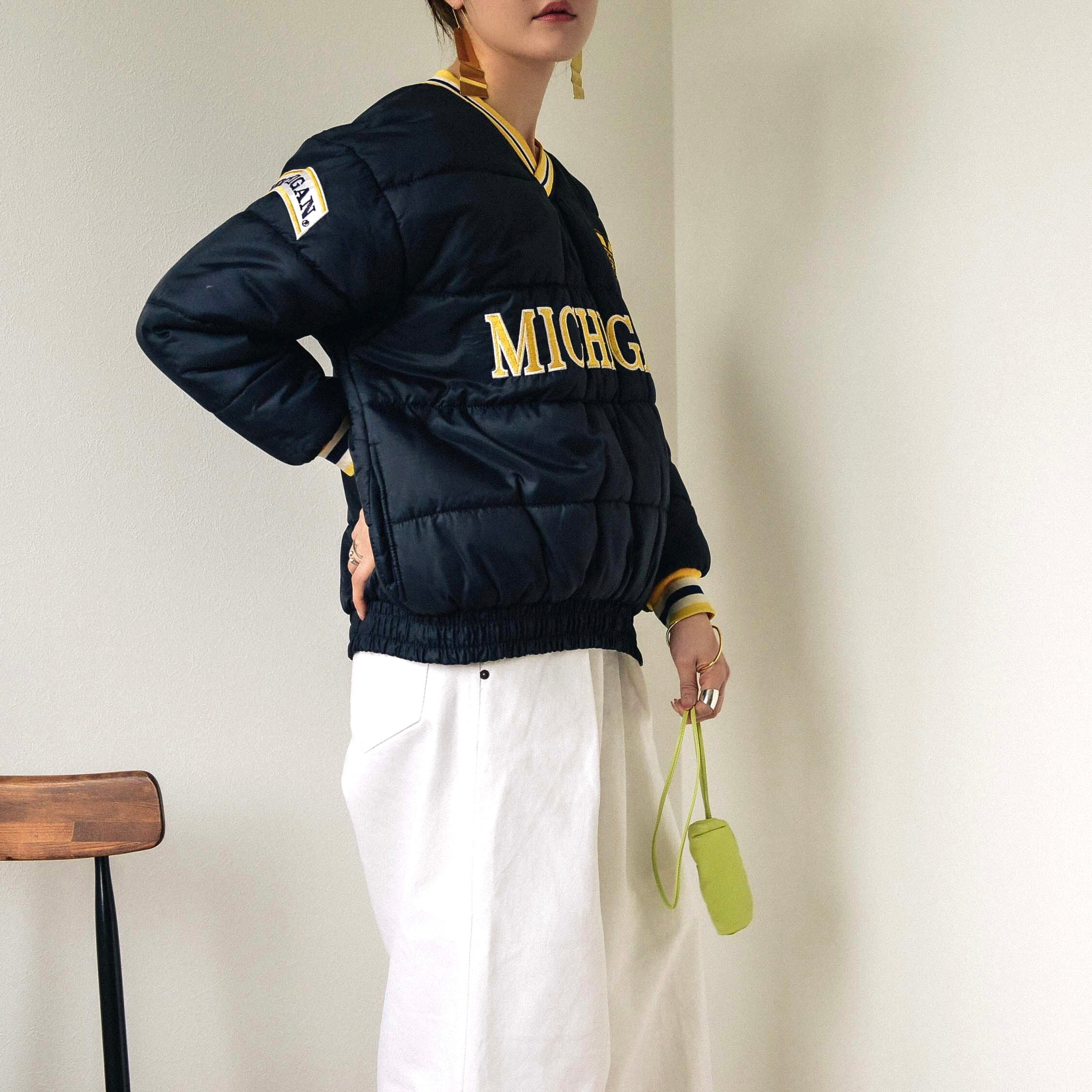 どーんと施されたMishiganのロゴ刺繍がカワイイ。。!深いネイビーのボディにイエローのラインが映え、濃色でも重く見えない良い色合いです。