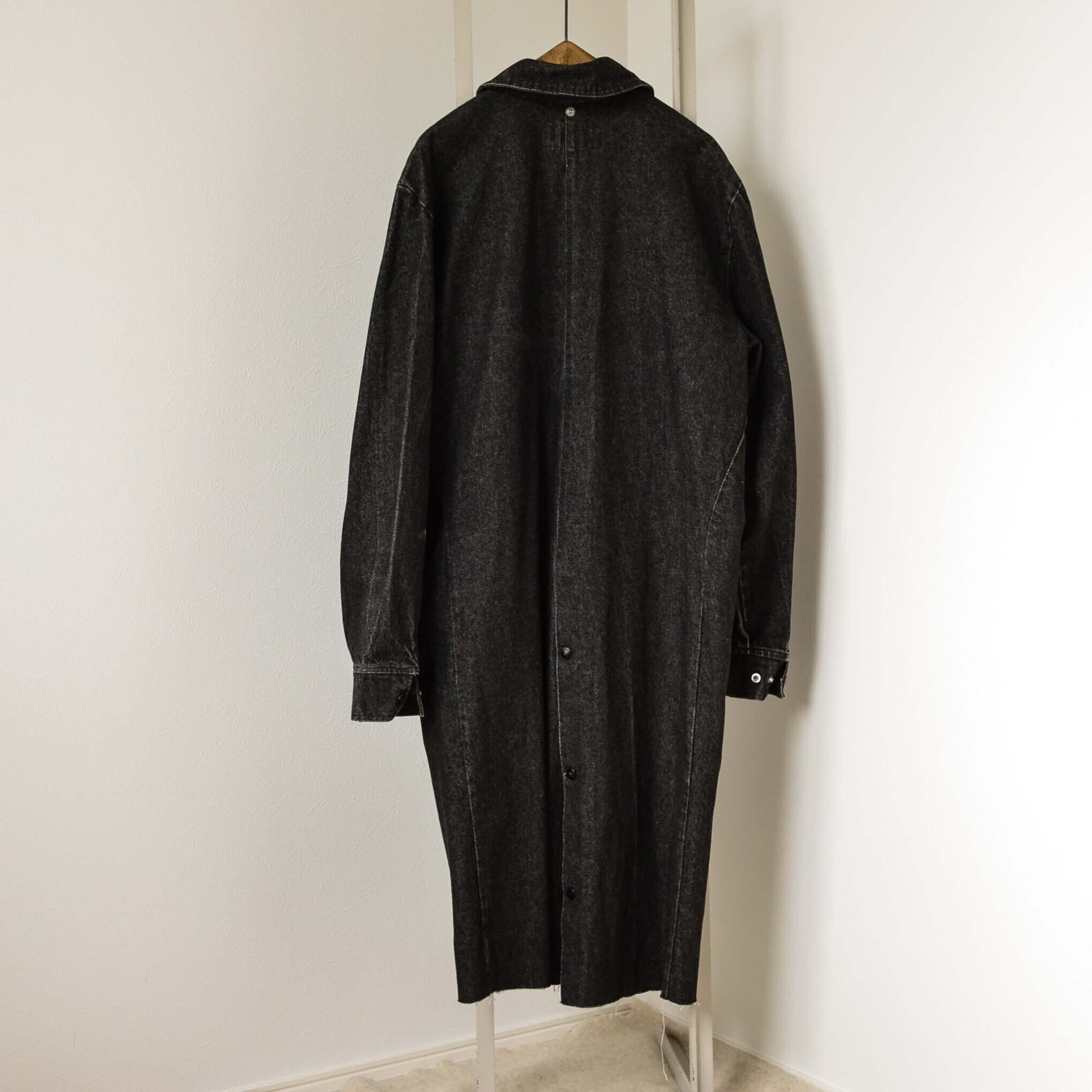ブラックデニムのオーバーサイズコート。