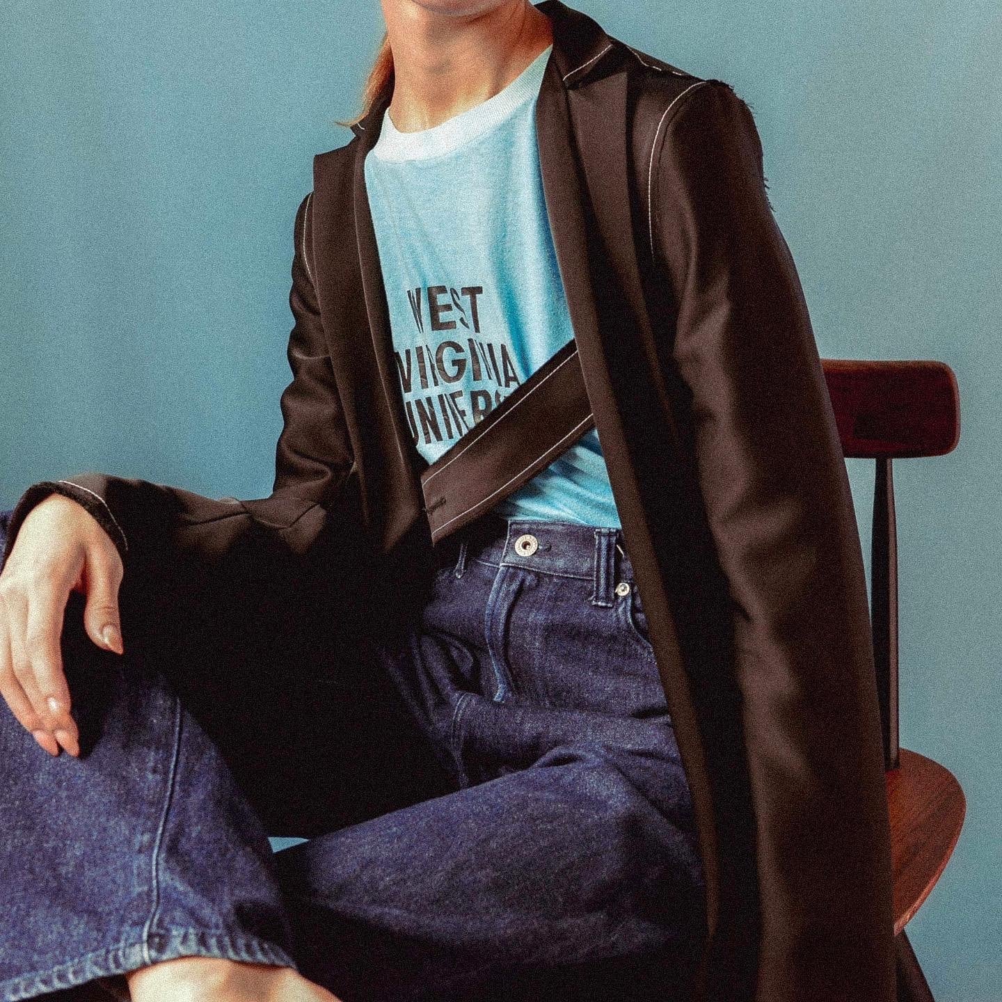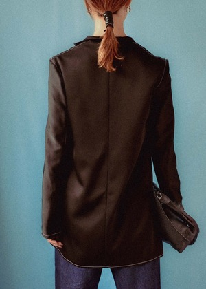 全体のシャープなカッティングにこの断ち切りと白ステッチのアクセントのバランスが絶妙。