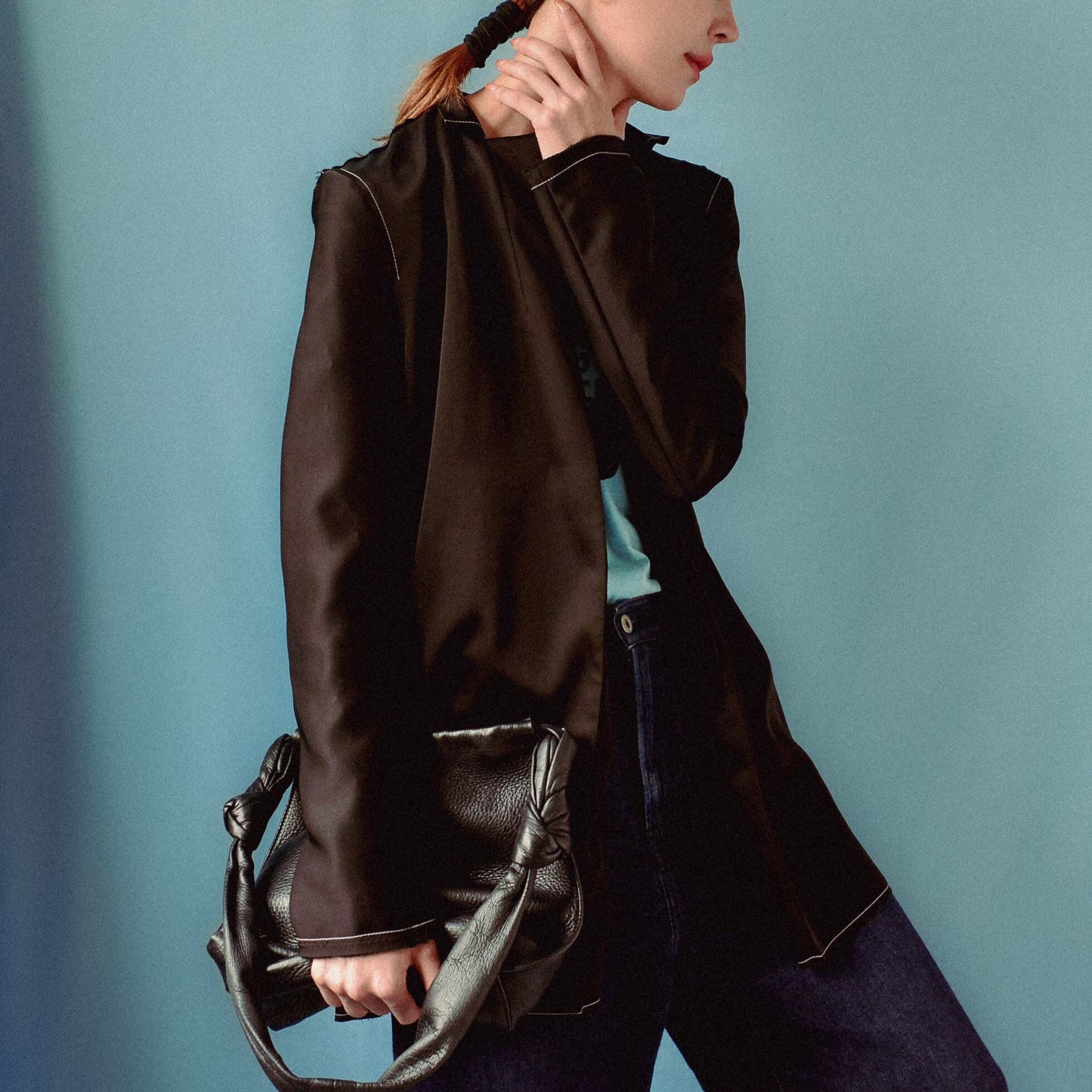 すべすべてろんと気持ち良い手応えを感じるサテン素材。穏やかな艶のハーフマットでシックな黒が美しいです。