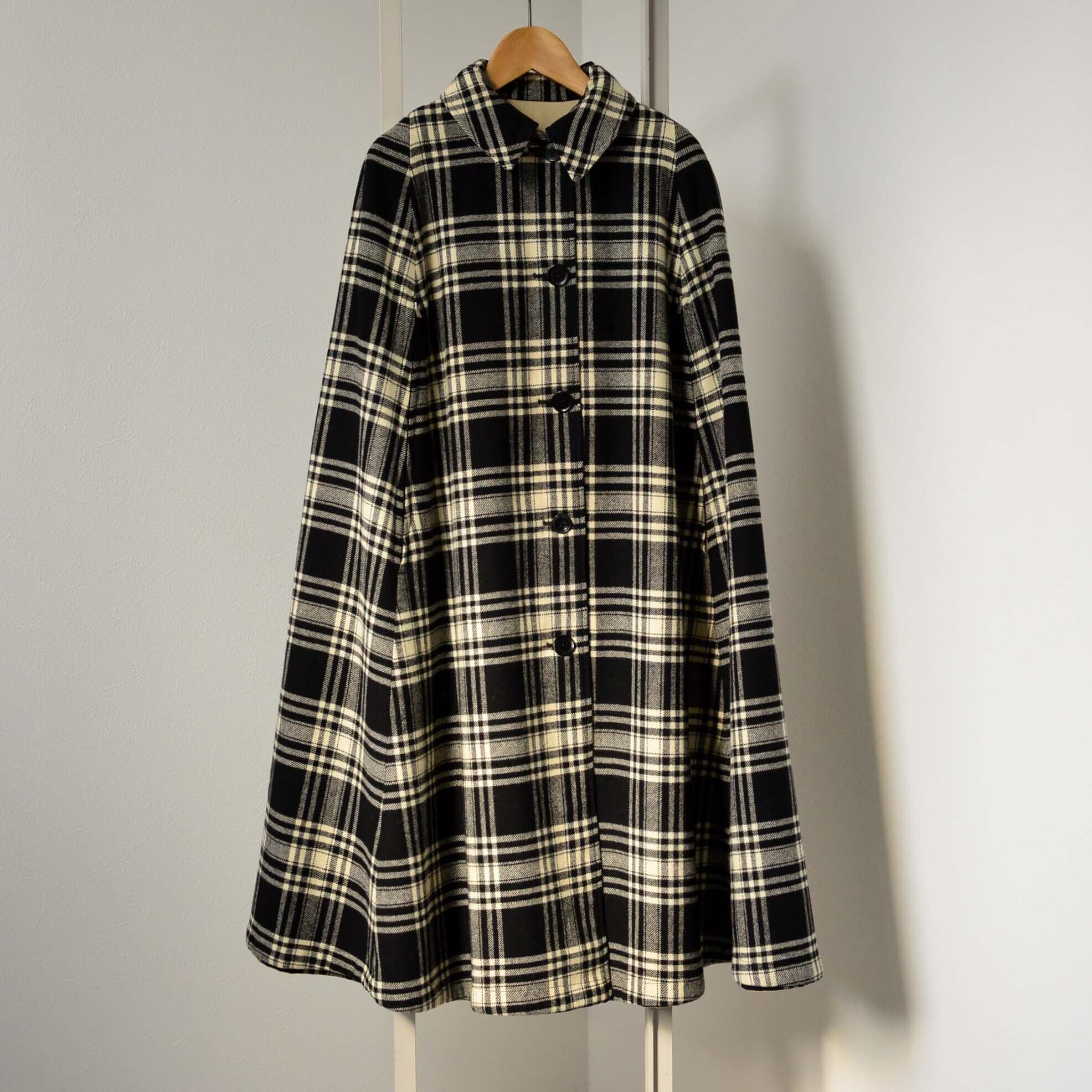 素材: 表記なし。おそらく、ベージュ側はコットン。チェック側はwool。