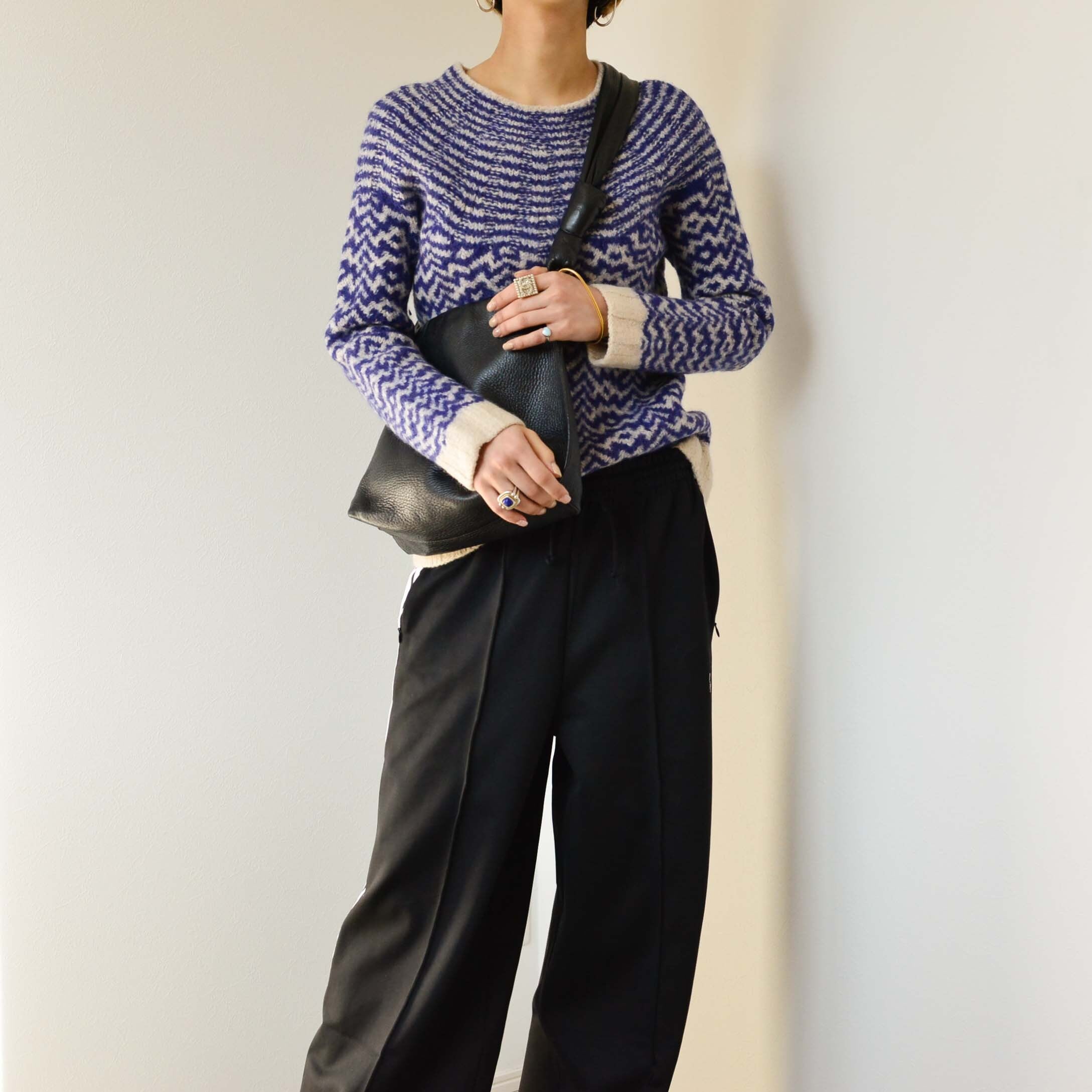 タック入りのスラックスなど、キレイ目なボトムとの合わせも素敵です。