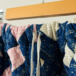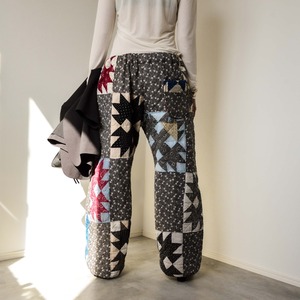 パッチワークキルティングの素朴なあたたかみを堪能できるパンツ。