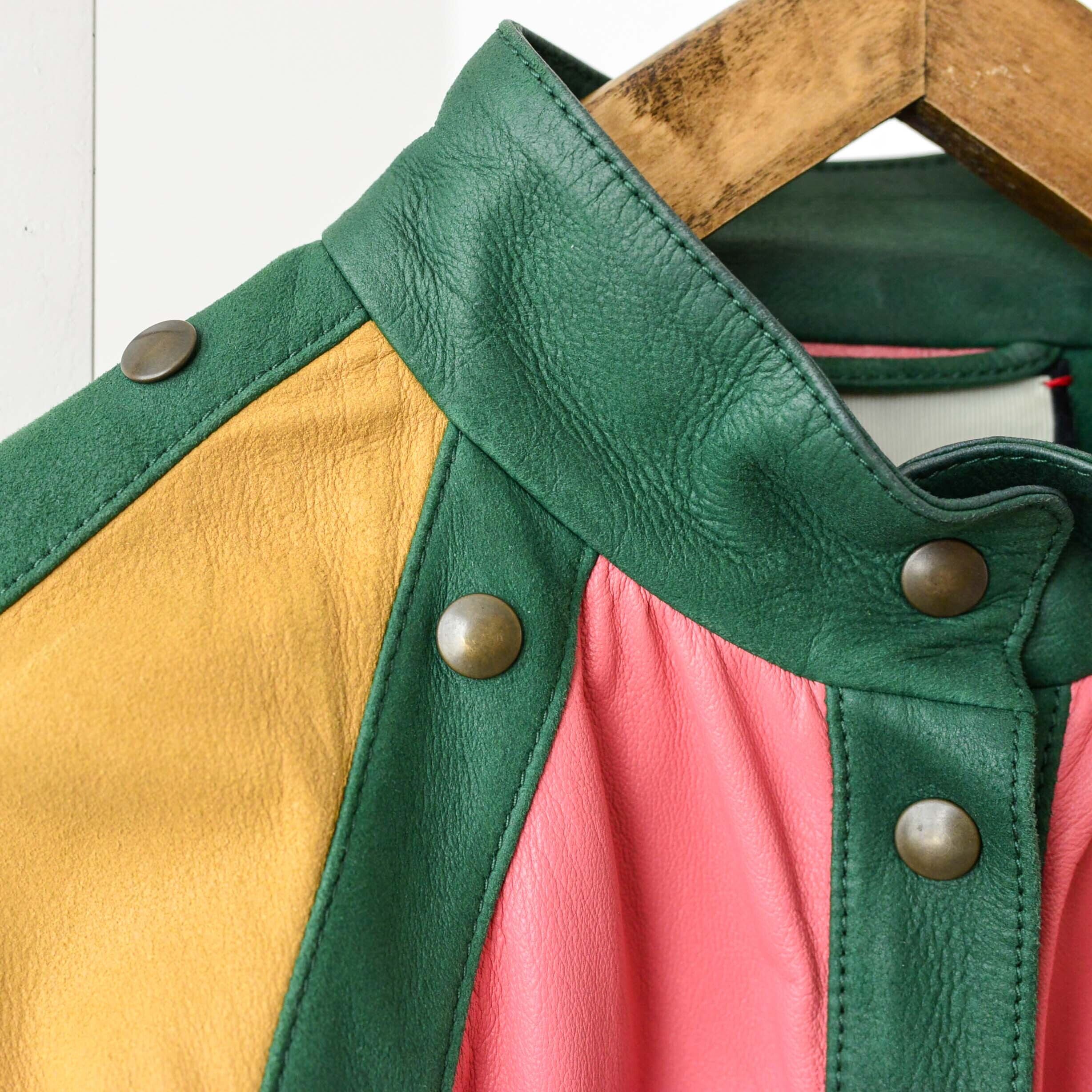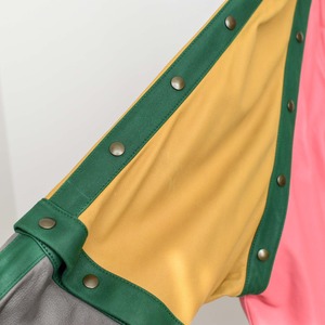うっとりするほどにしっとり柔らかなラムレザー。そんな極上の素材を茶目っ気ある色合いに染めてマルチカラーのスタジャンをつくってしまうなんて流石はミケーレ!
