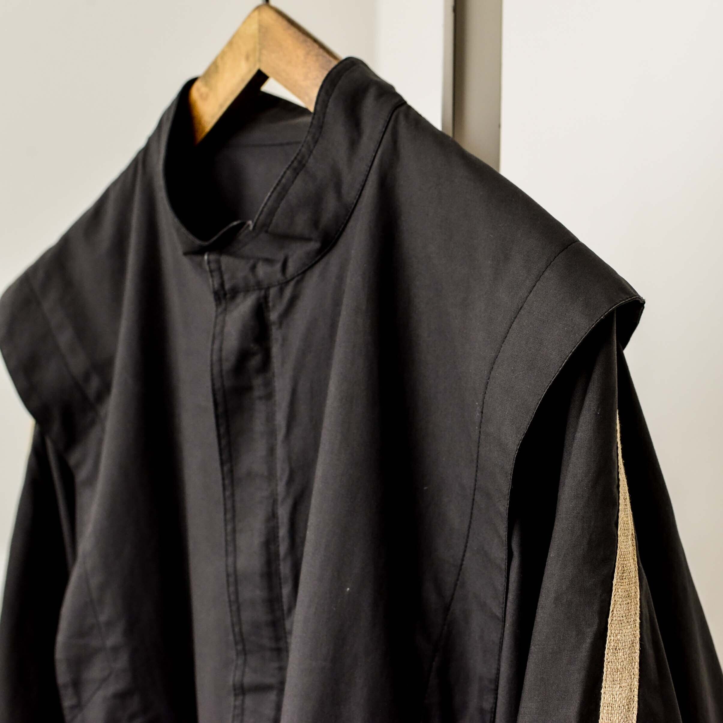 ハリがありわしゃっとした手触りのコットン素材。フェードしたような浅めの墨黒がこなれた印象。
