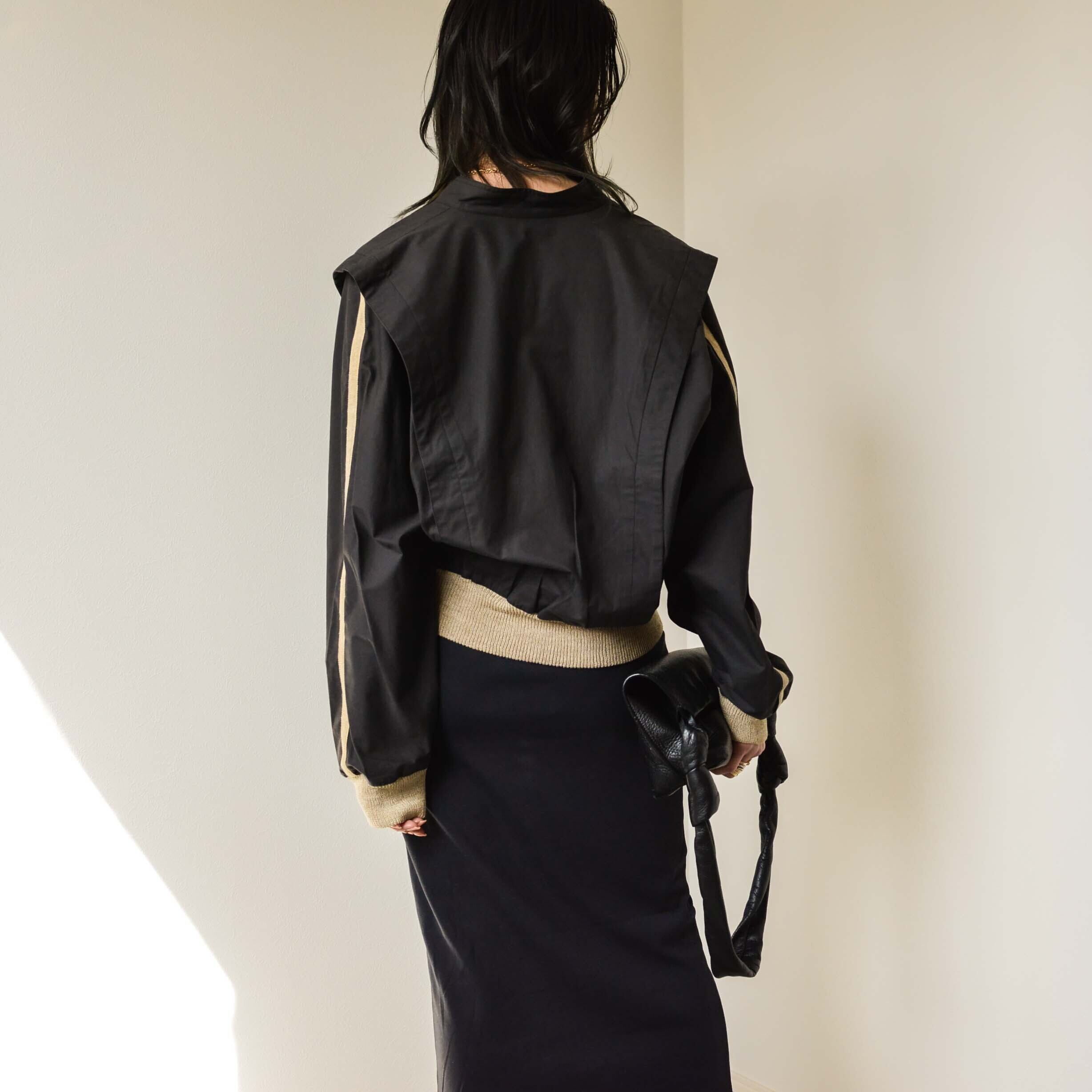 80年代らしいショルダーデザインとドルマンスリーブ。コンパクトに見えてたっぷりとゆとりがあり、さくっと羽織るのに使いやすい形。