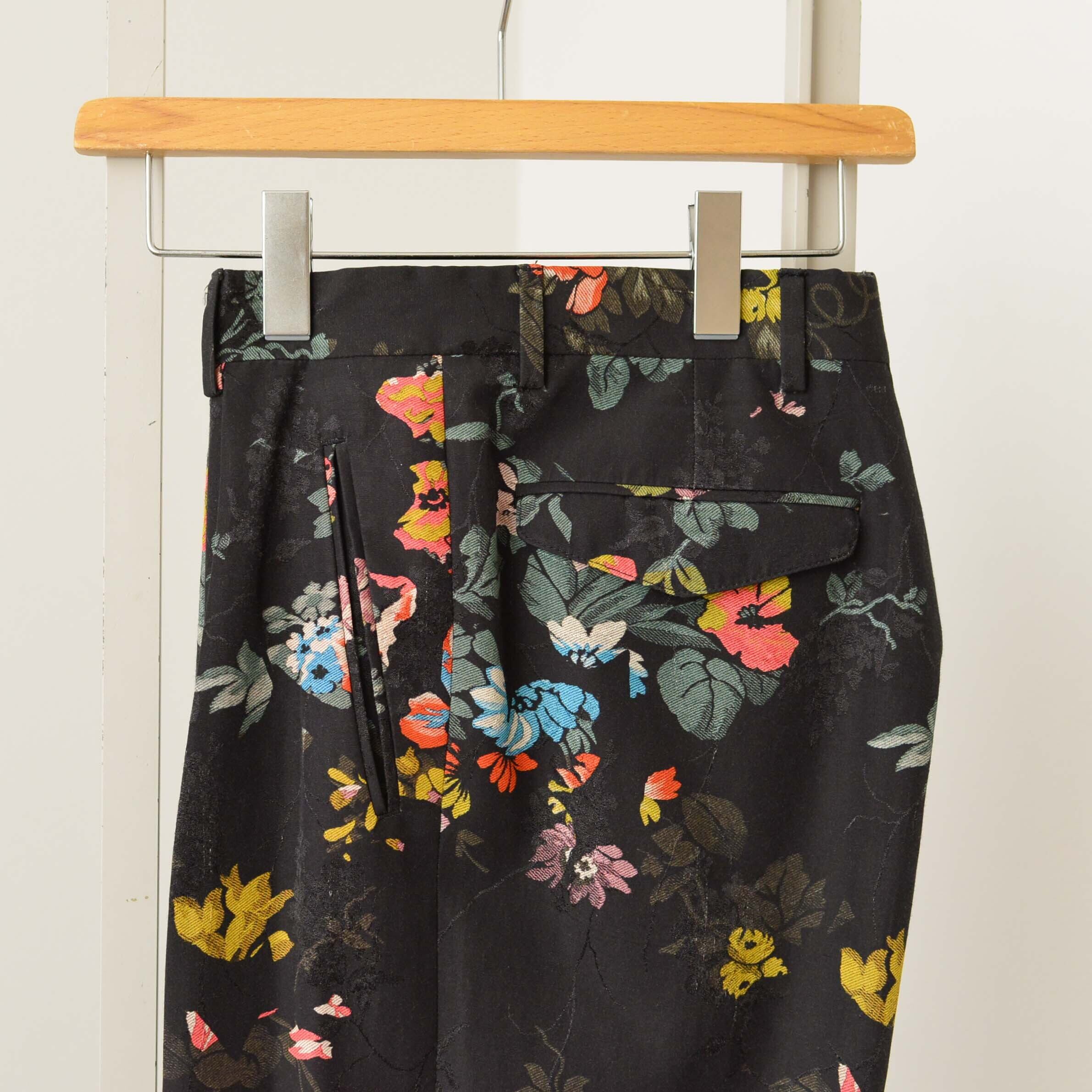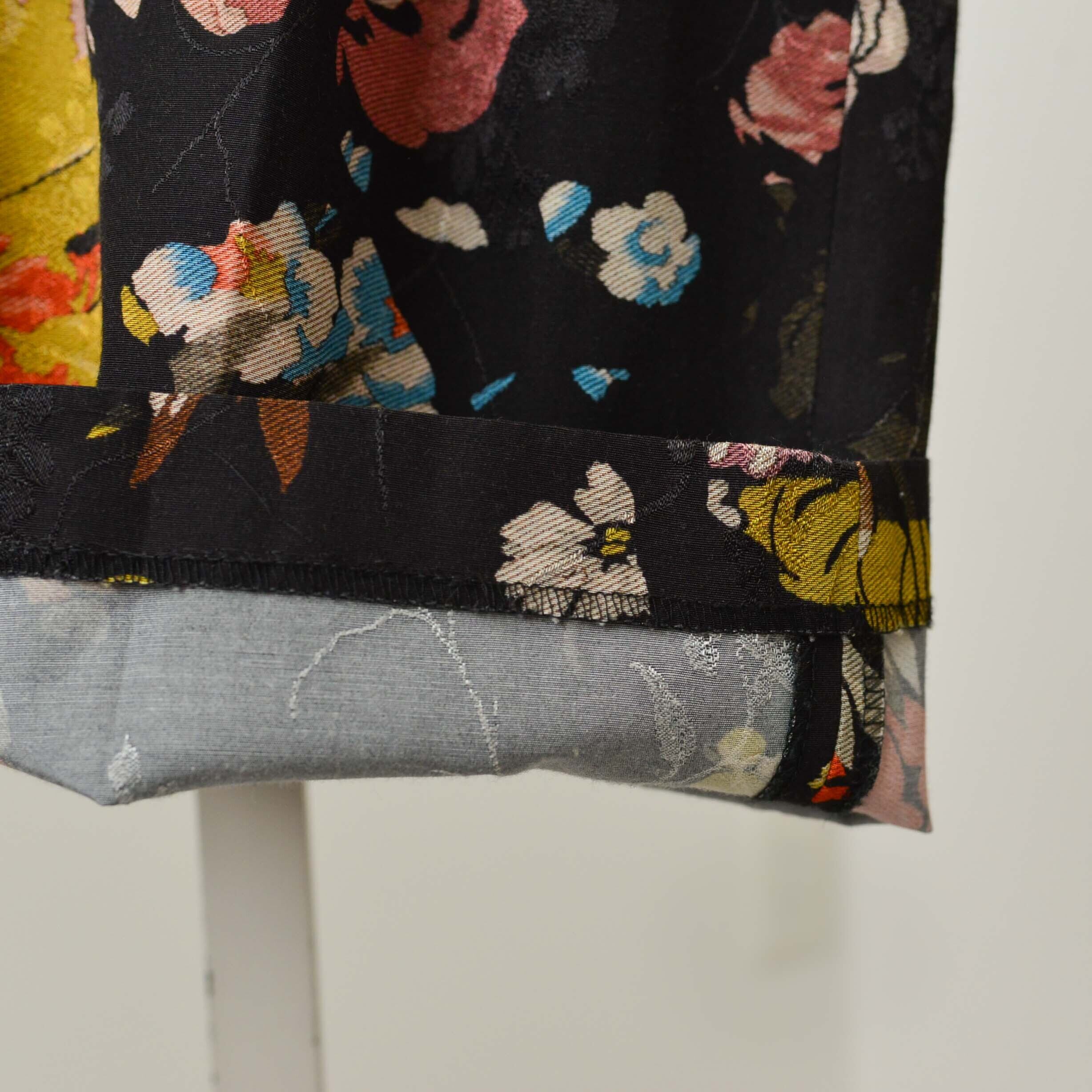 プリントとジャガードの合わせ技で、つやっと艶めいて浮き立つ織りの花が美しい。