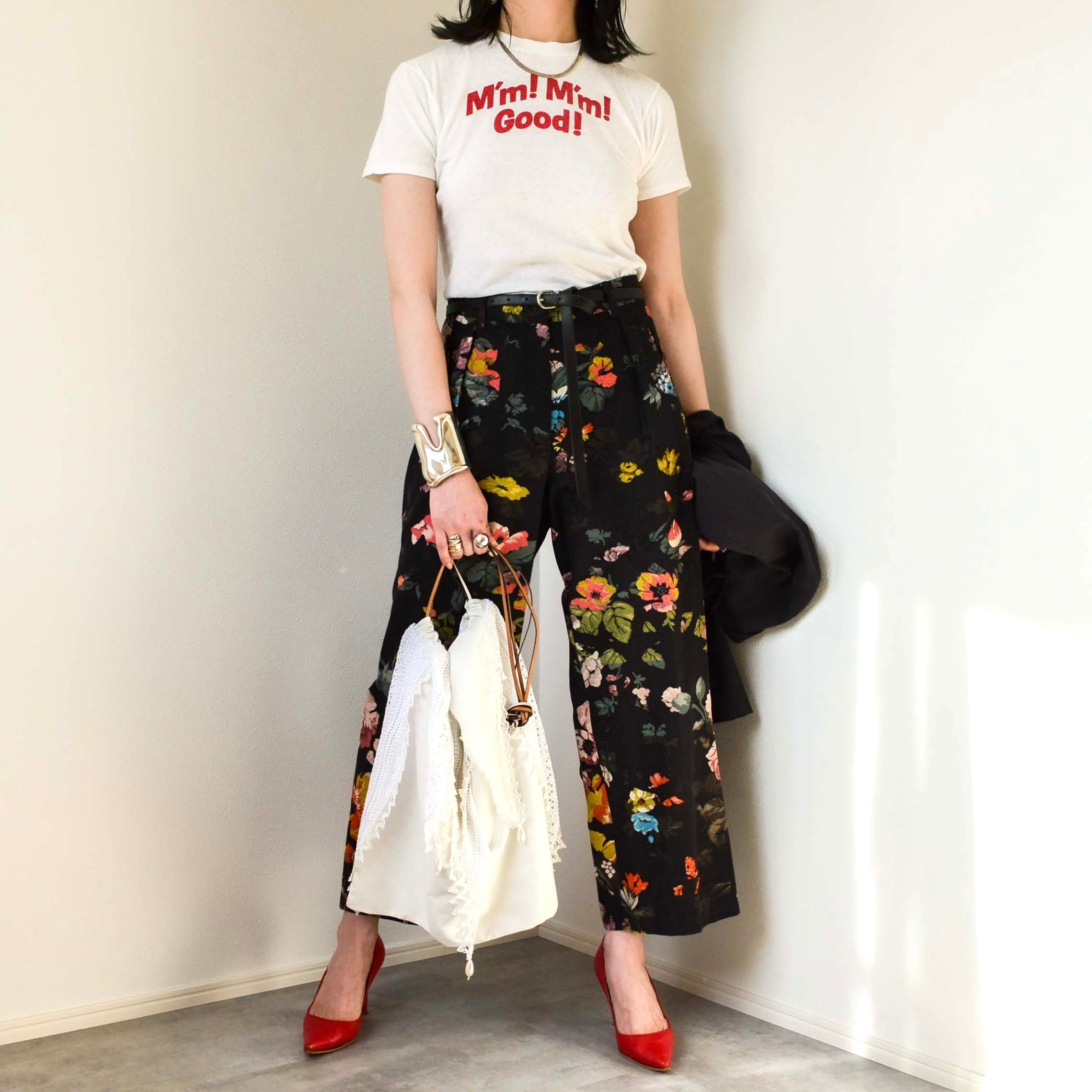 ビスコース多めのしなやかな落ち感は身体の線を拾わず、張りも出過ぎず履きやすいです。