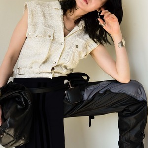 ブラトップなどに合わせてノースリーブトップス感覚で着ても格好良い。