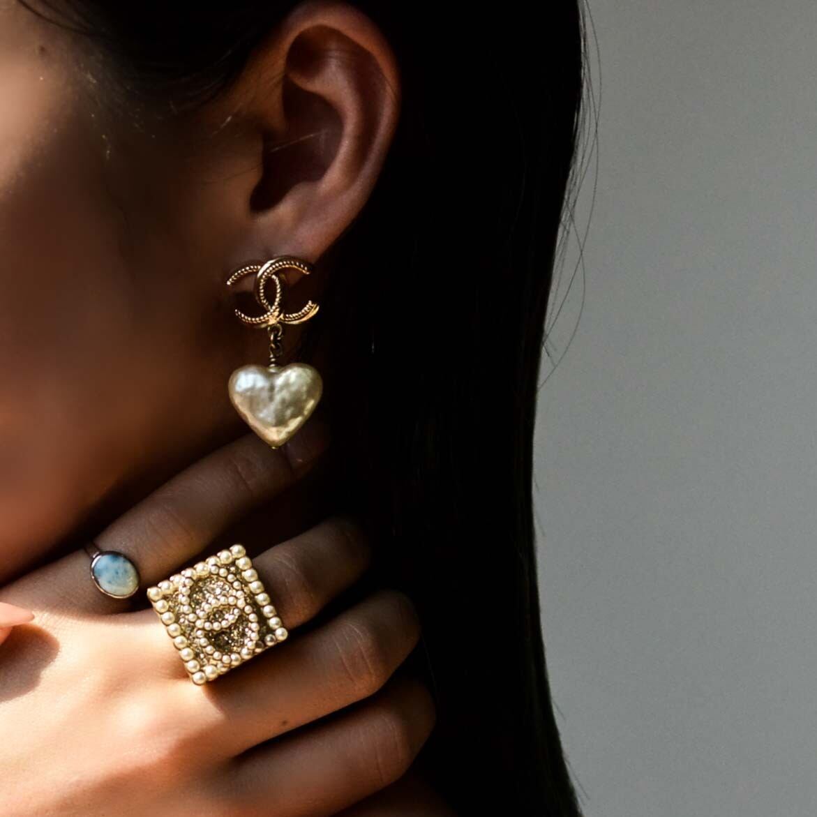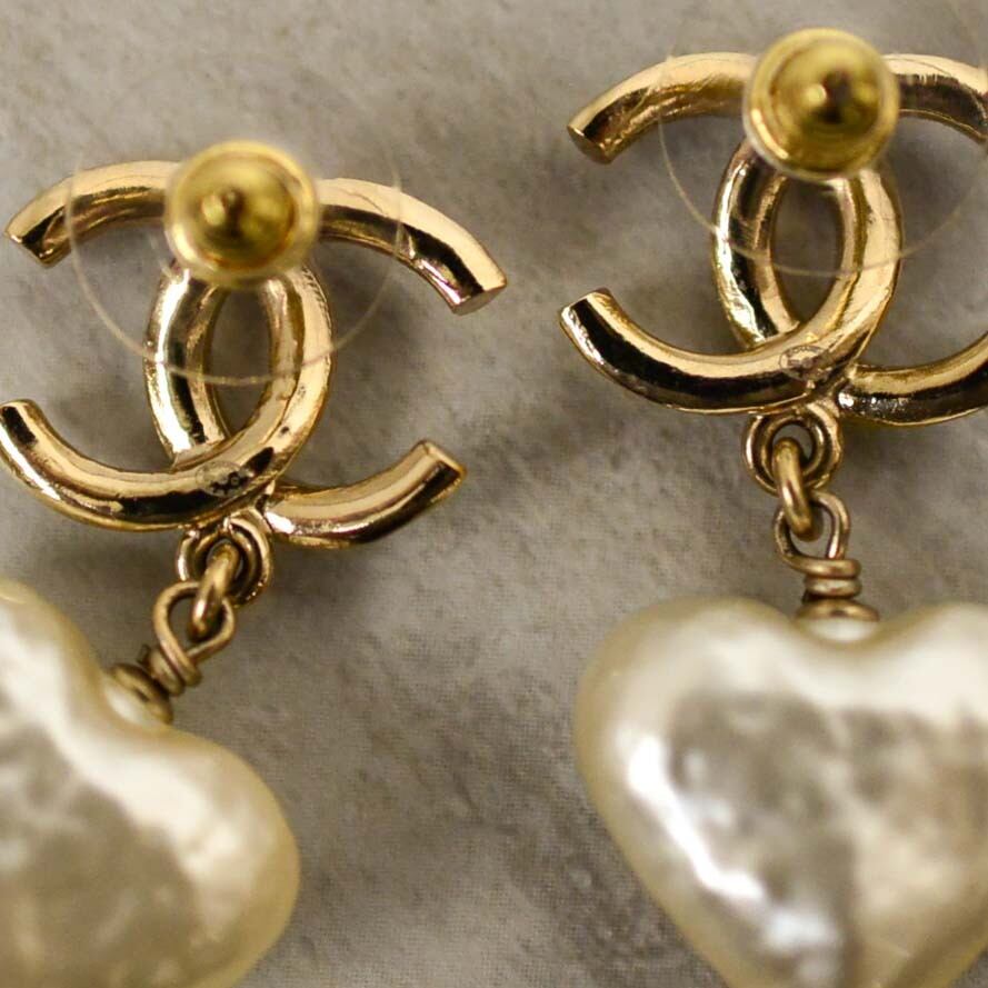ゴールドのCHANELマークに、ころんと揺れる、表情豊かな♡のフェイクパールがとてつもなくキュート!