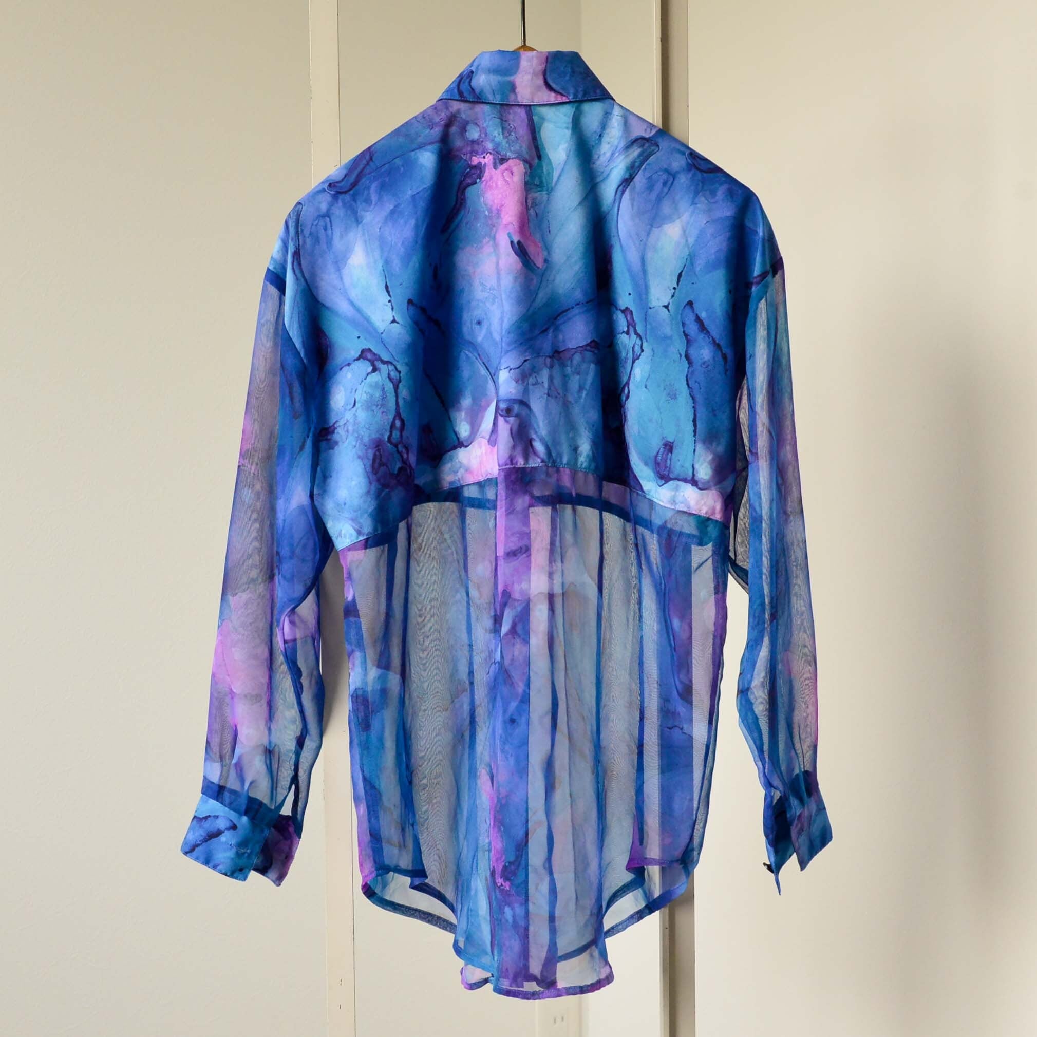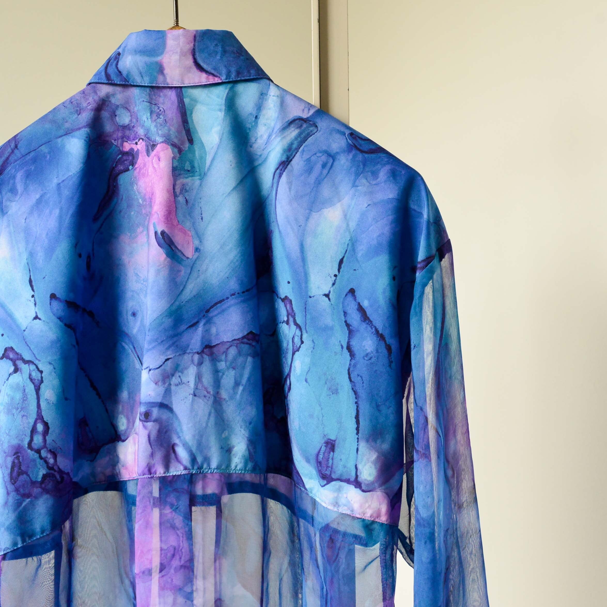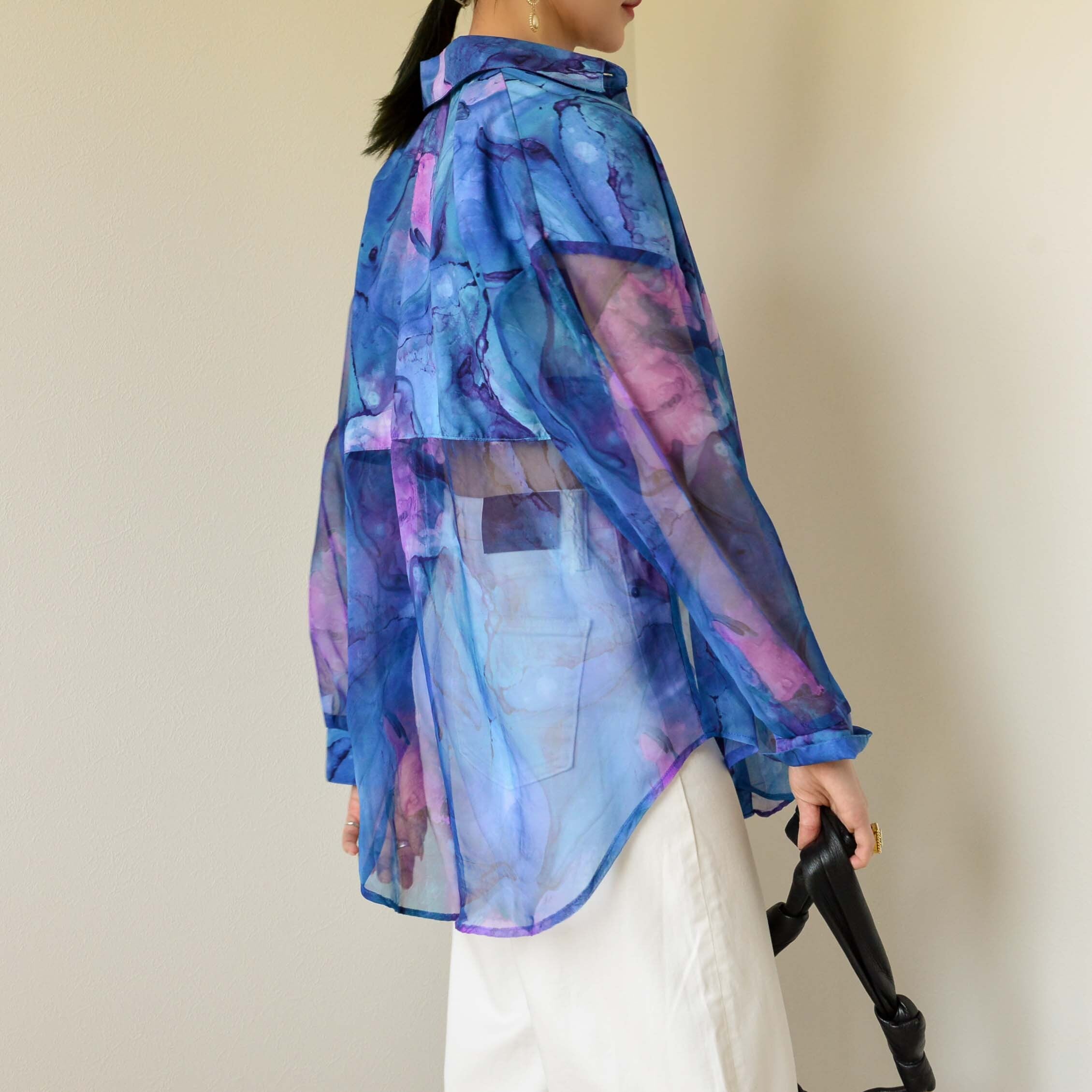 宇宙のような鉱物のような、深く美しいブルーとパープルのマーブル柄。