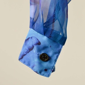 襟、カフス、胸、背中は透けないハーフマットな素材。