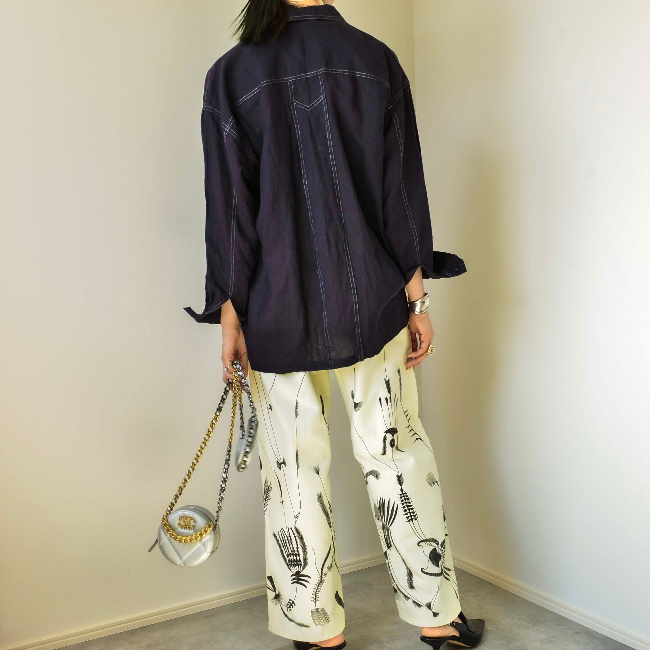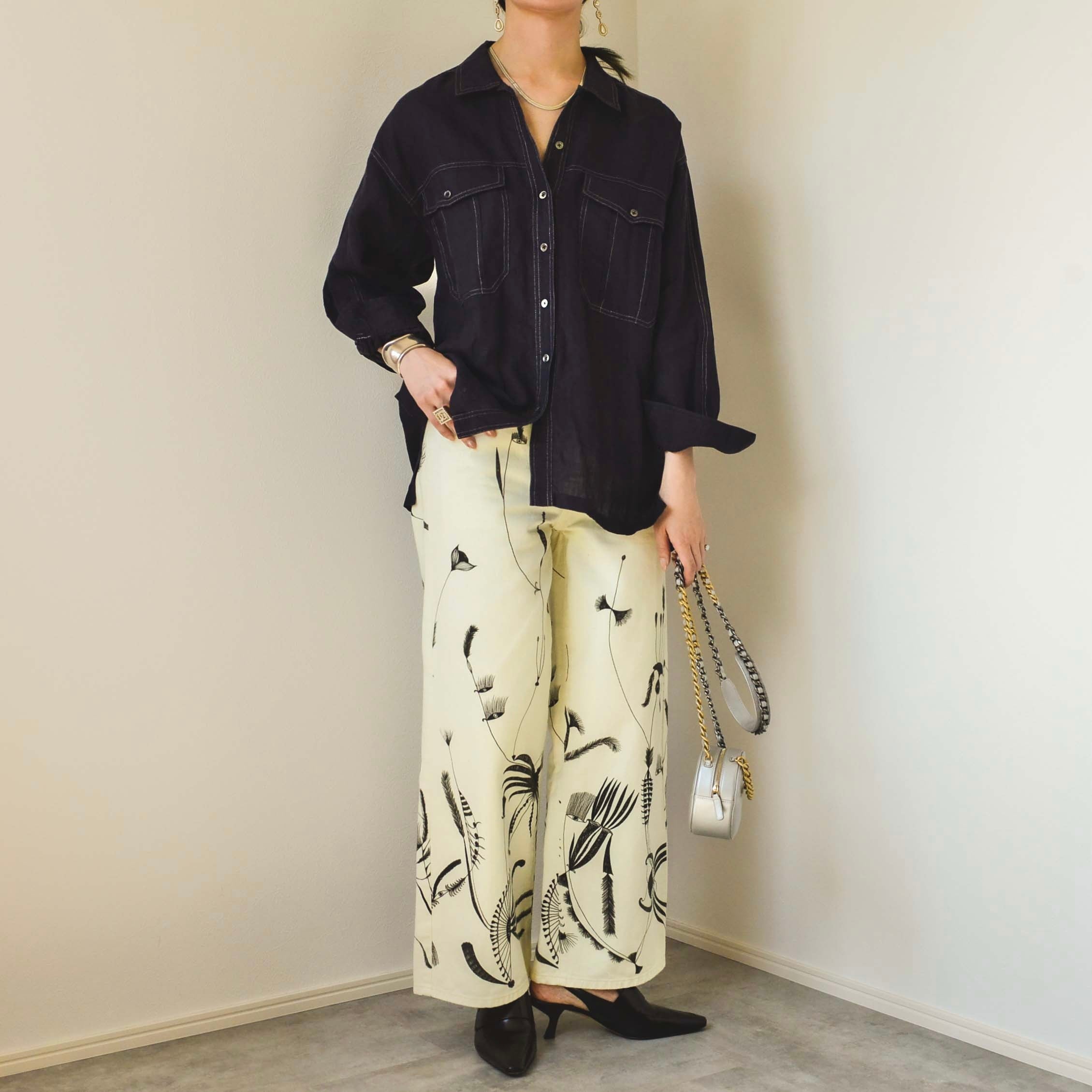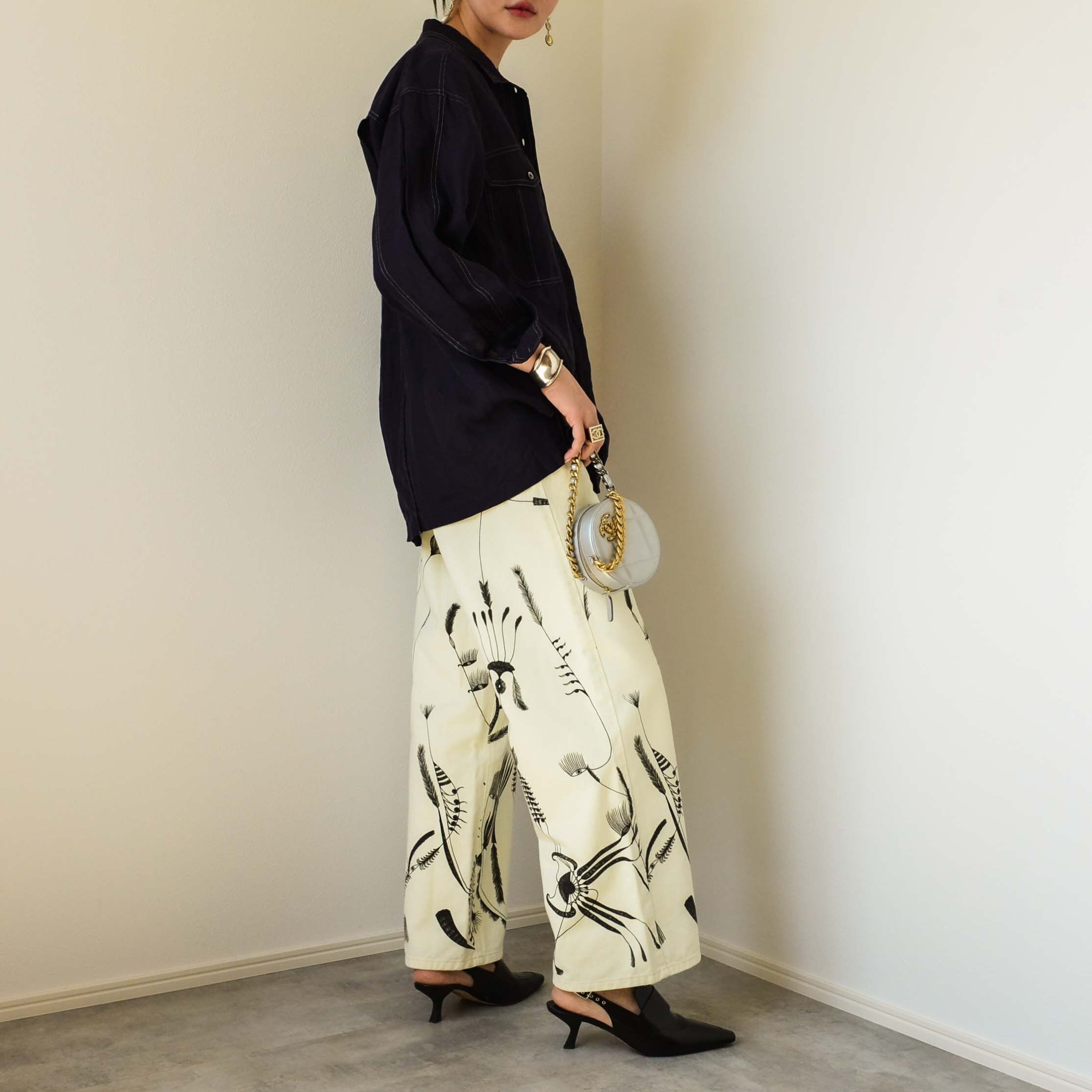 シンプルにこのパンツを主役にしてもよし。あえてストライプや花柄を合わせたり、ワンピースやコートの裾から柄を覗かせるのもすてきです。