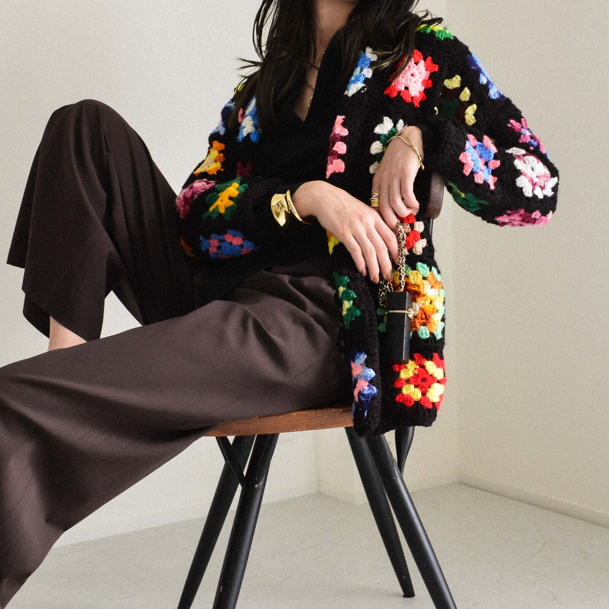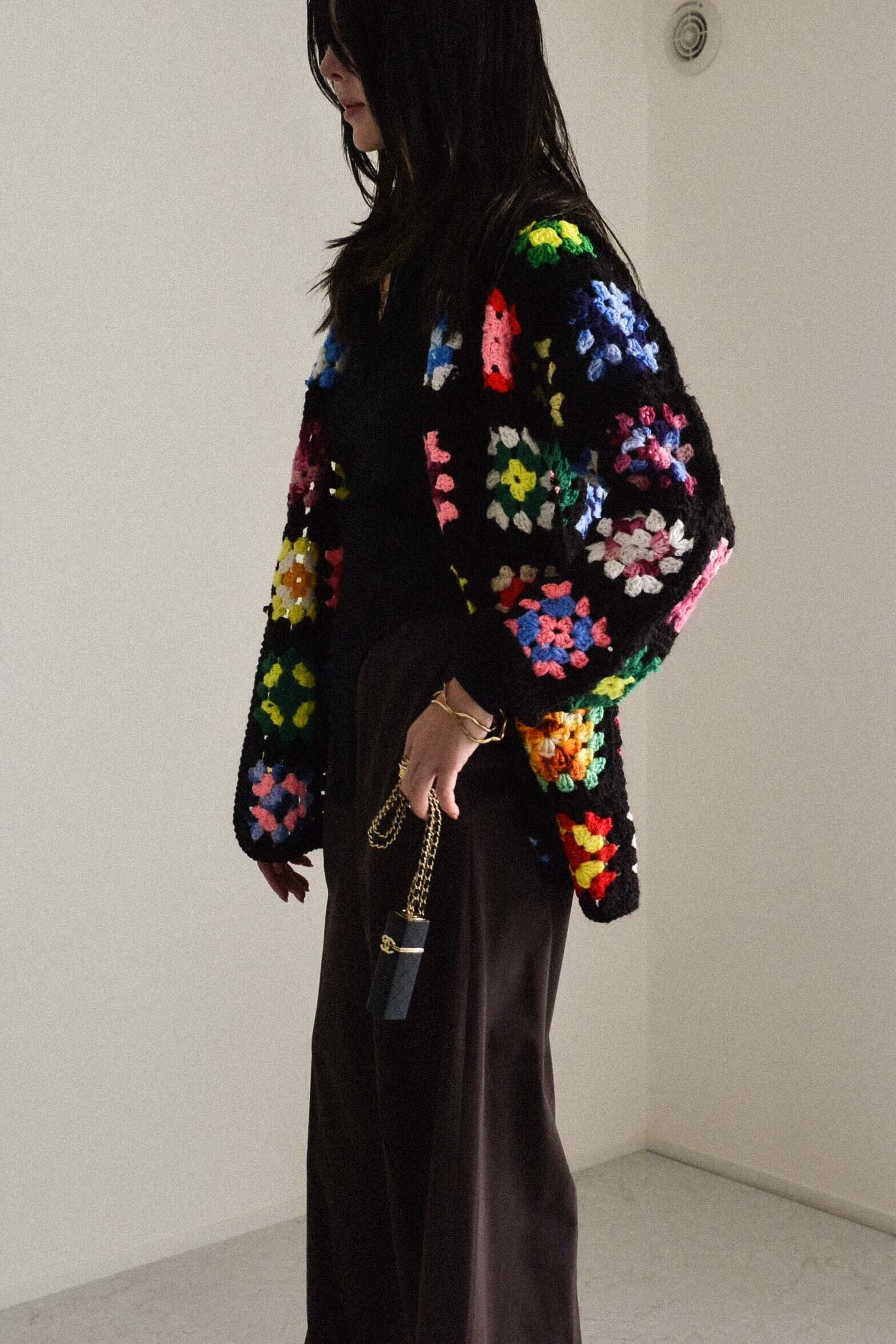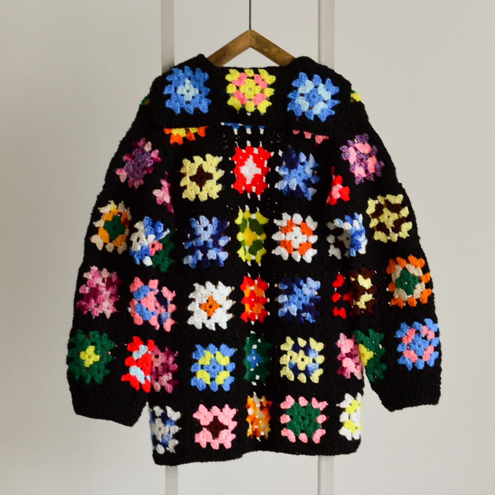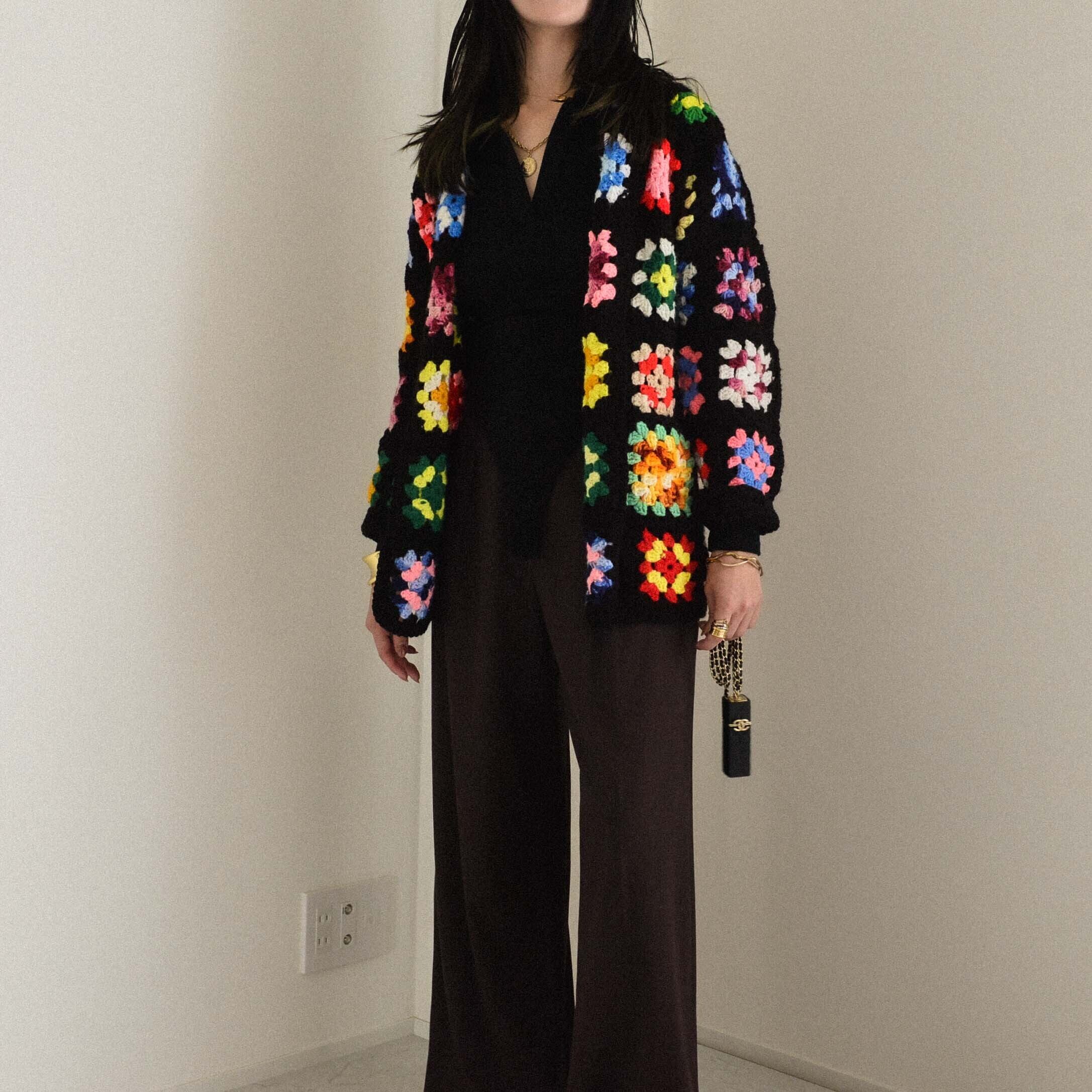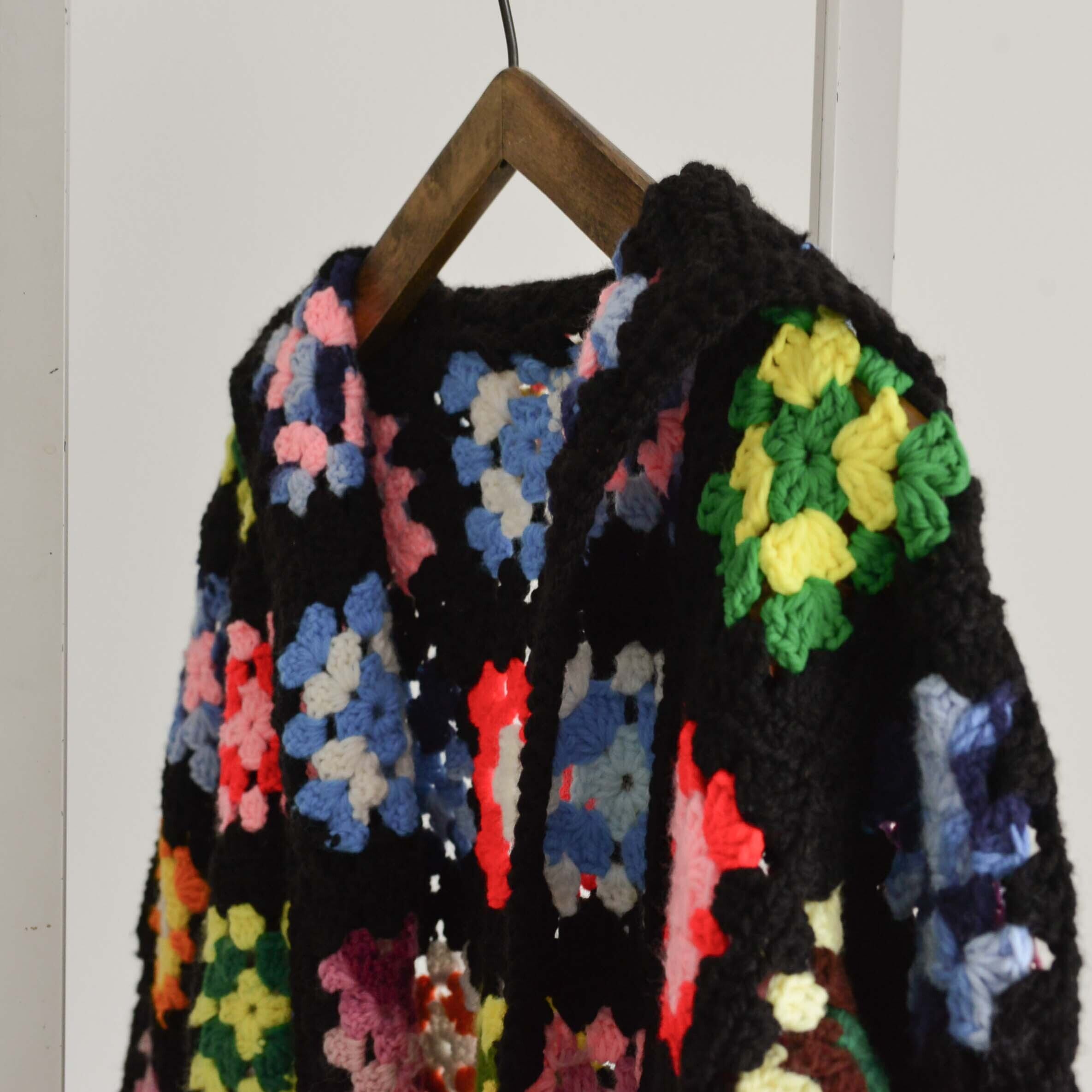 四角いモチーフを繋ぎ合わせたグラニースクエアと呼ばれるかぎ針編み。
