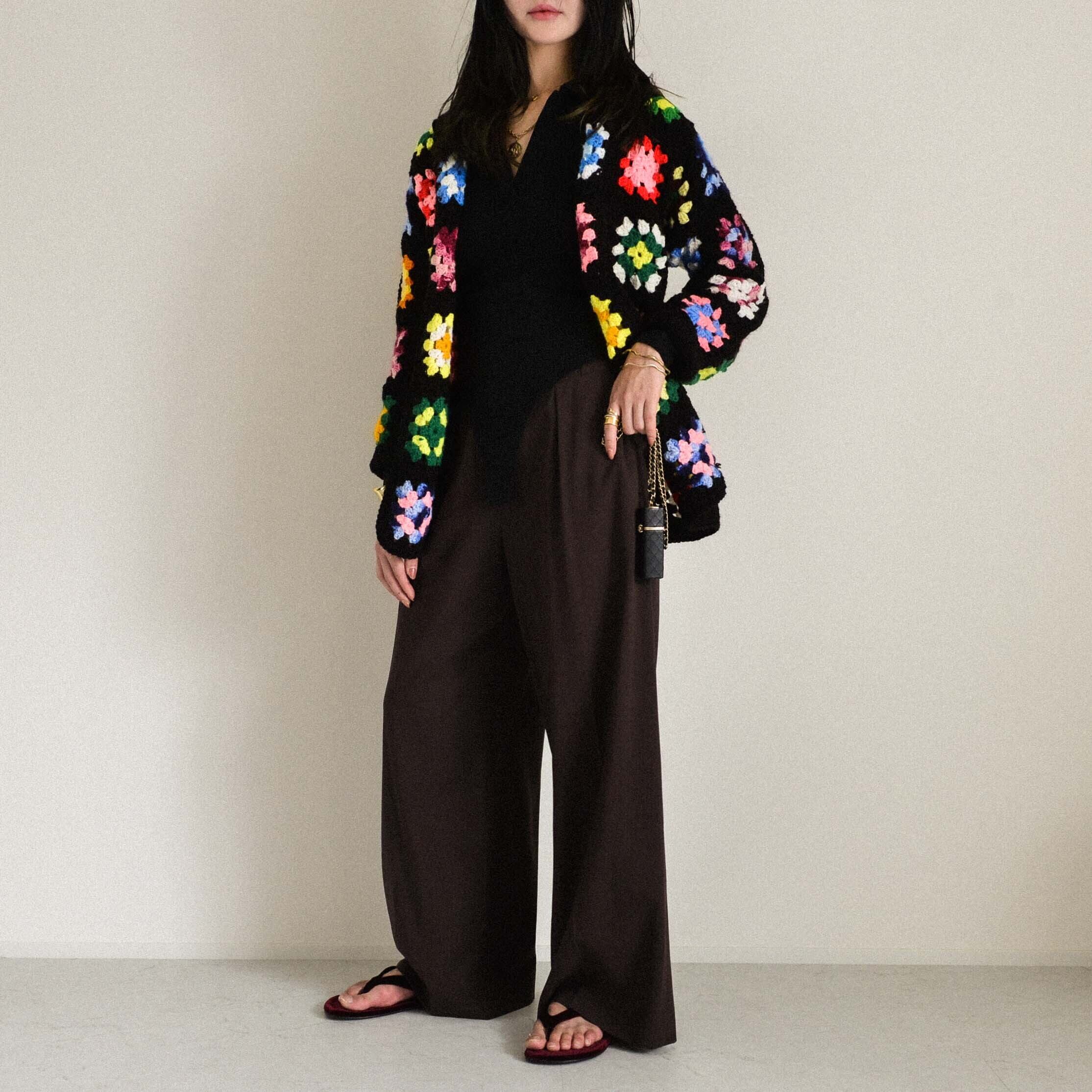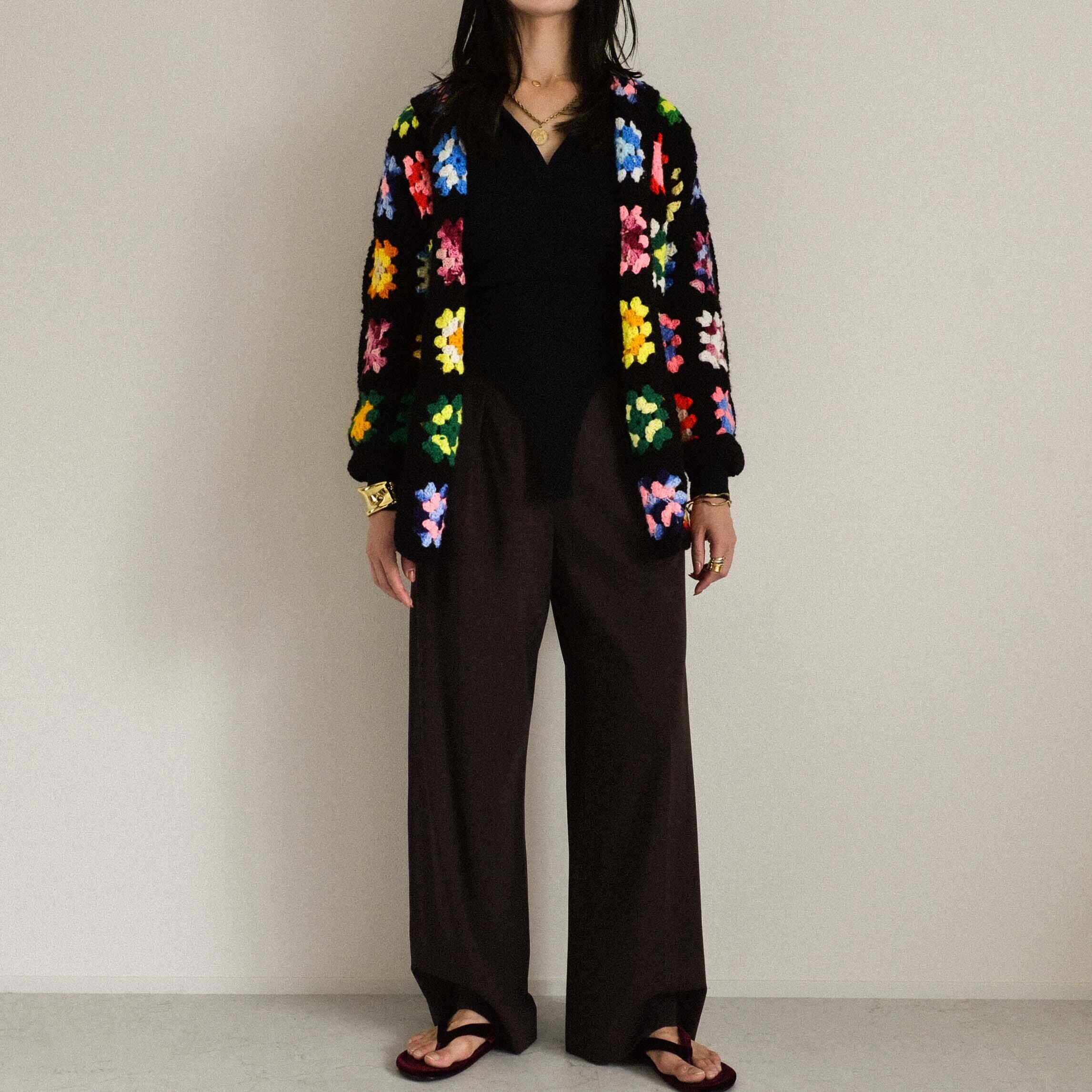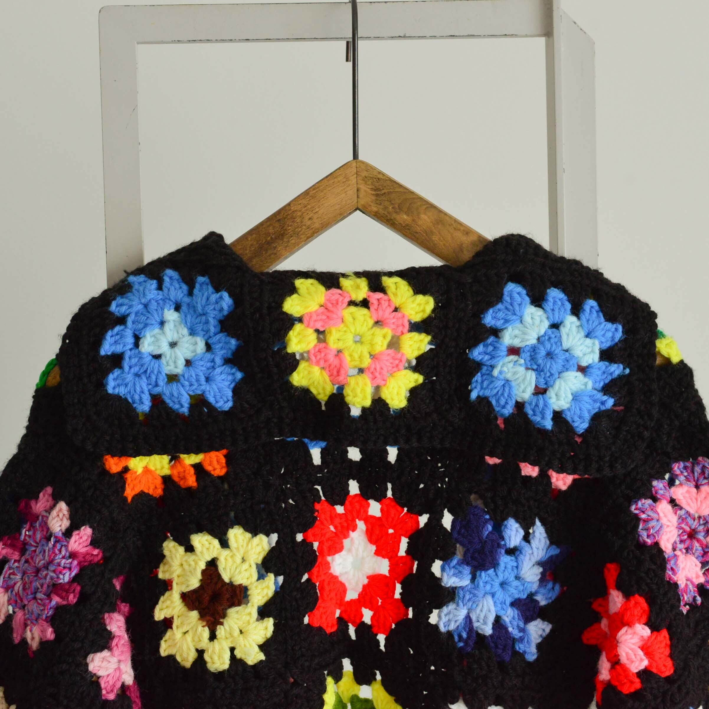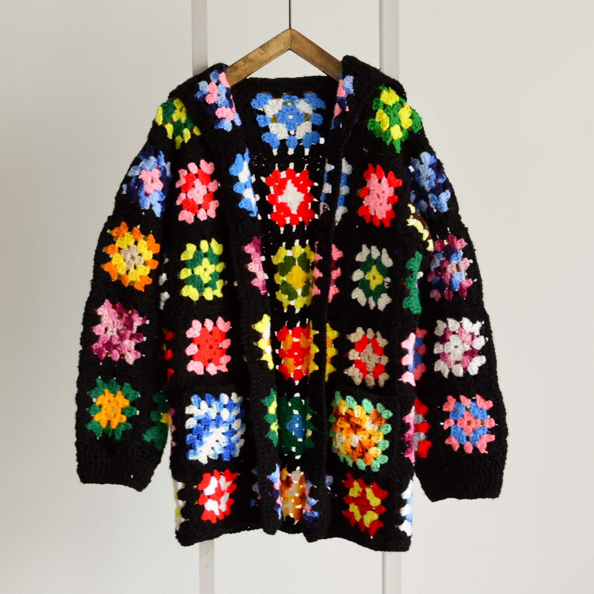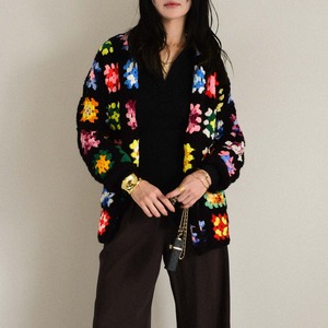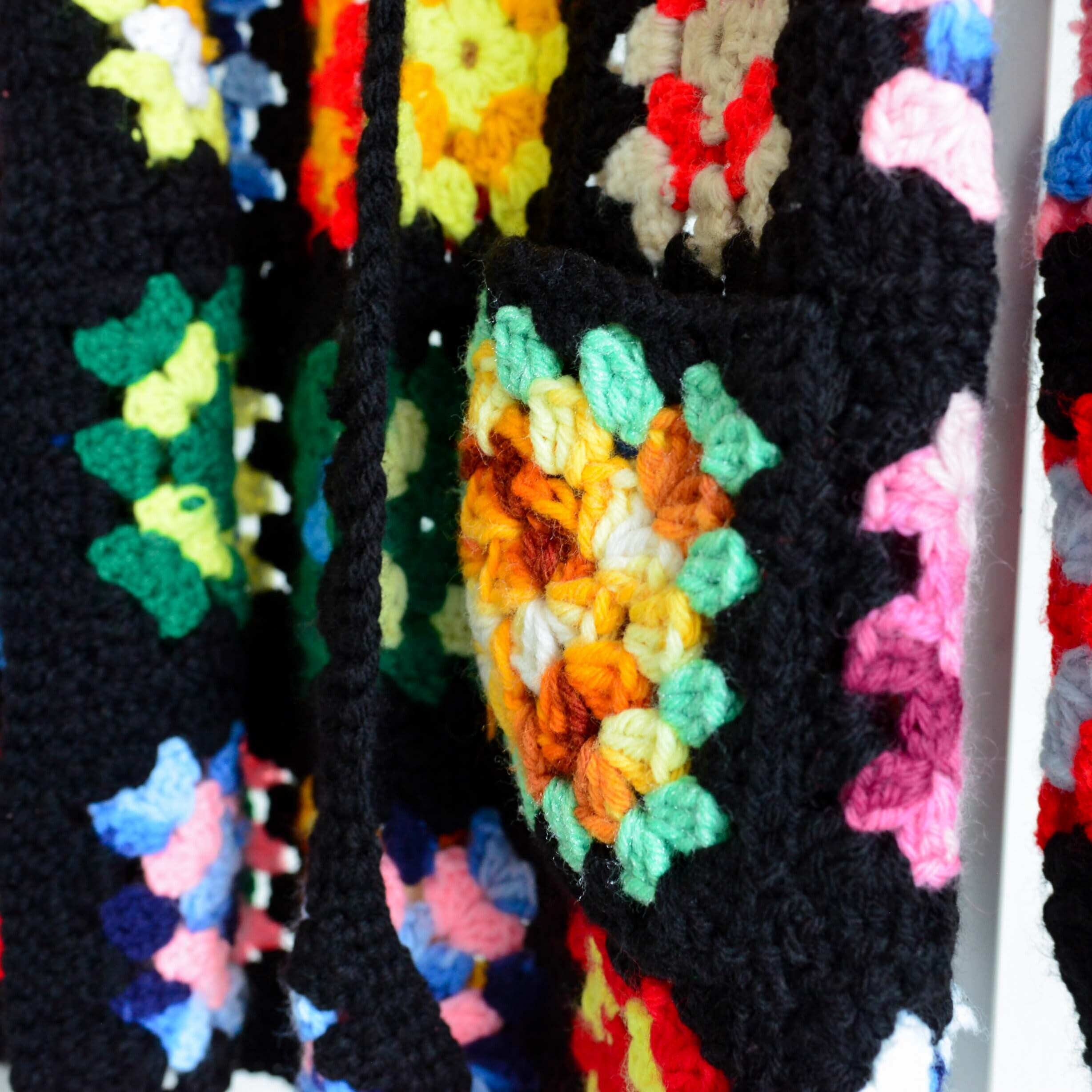 四角いモチーフを繋ぎ合わせたグラニースクエアと呼ばれるかぎ針編み。
